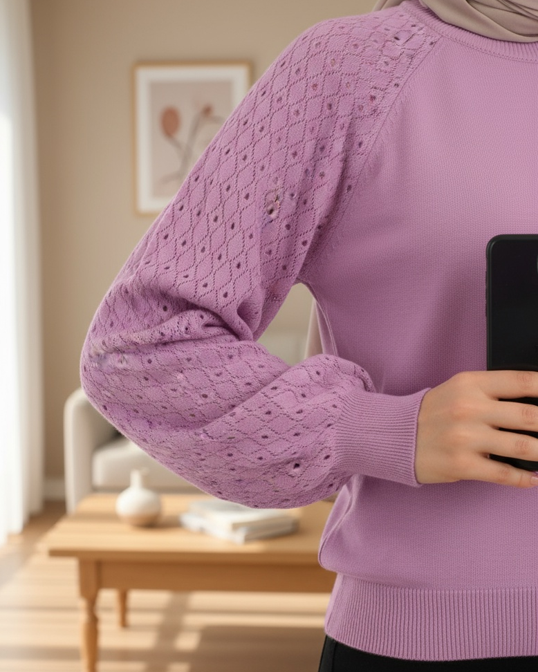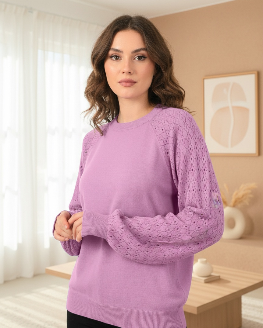 Kolları Ajurlu kadın Triko Kazak -Pembe-Pembe