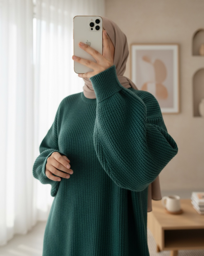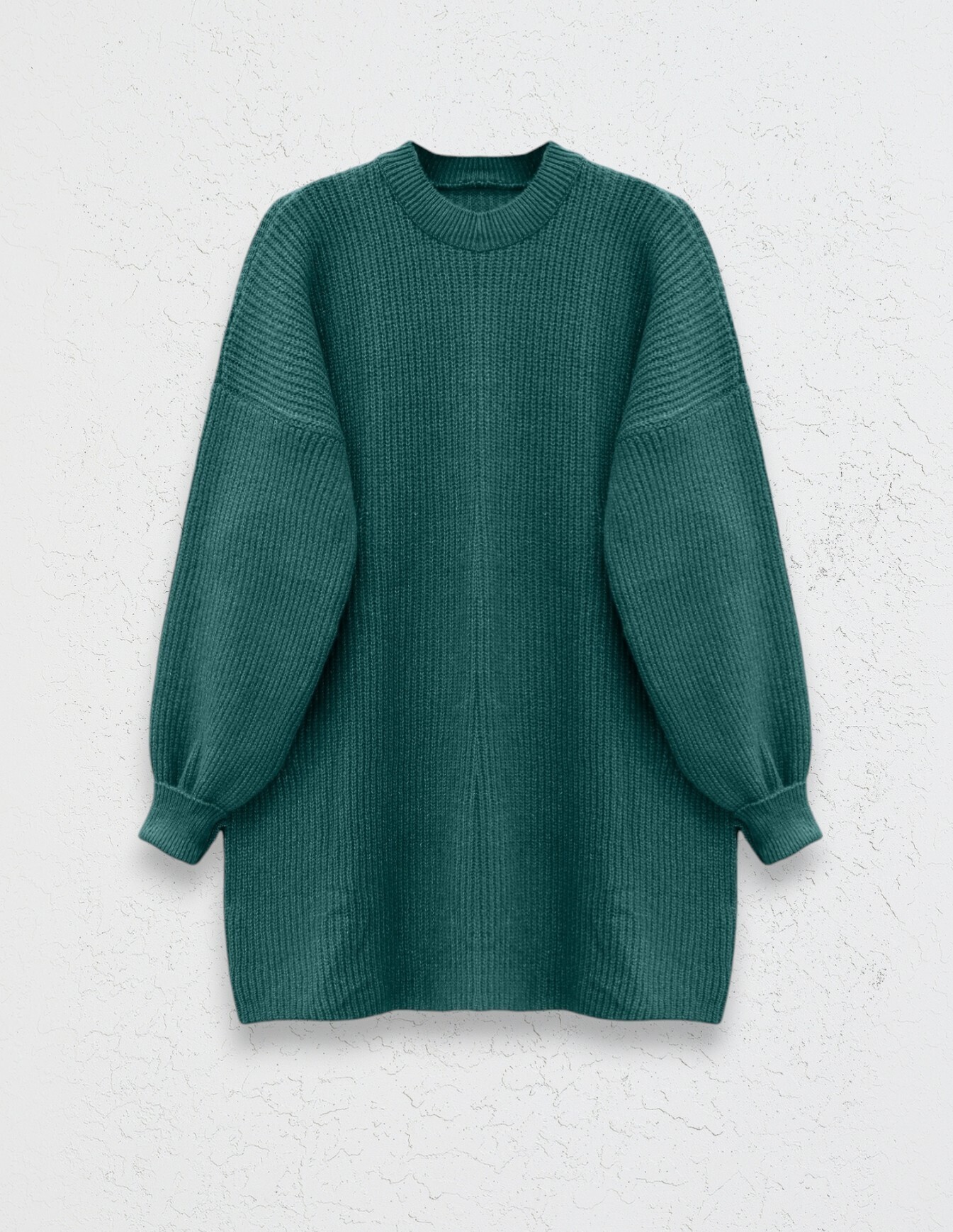 Yuvarlak Yaka Salaş Triko Tunik -Zümrüt-Zümrüt