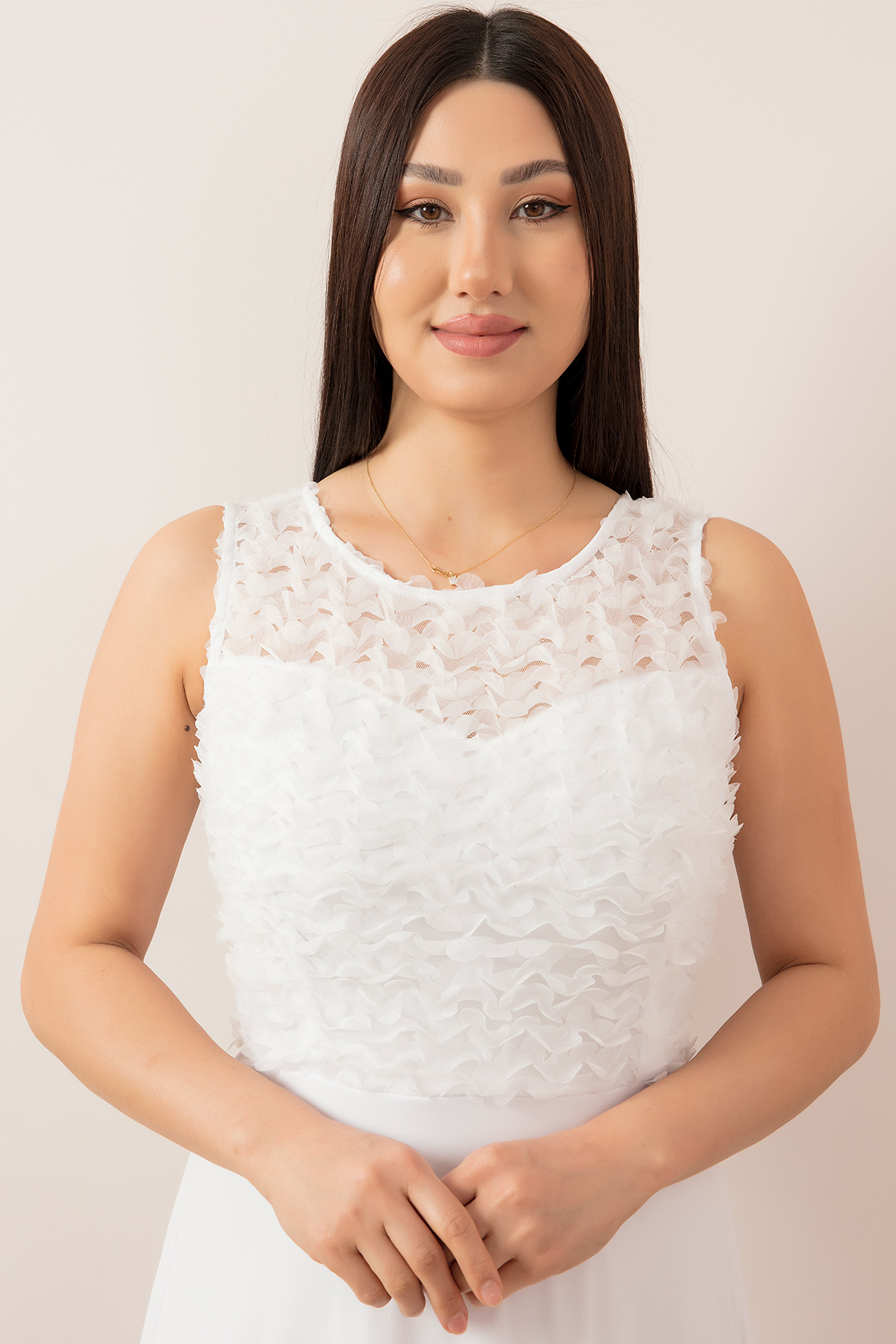 Beyaz Sıfır Kol Uzun Abiye Elbise 13341-BEYAZ