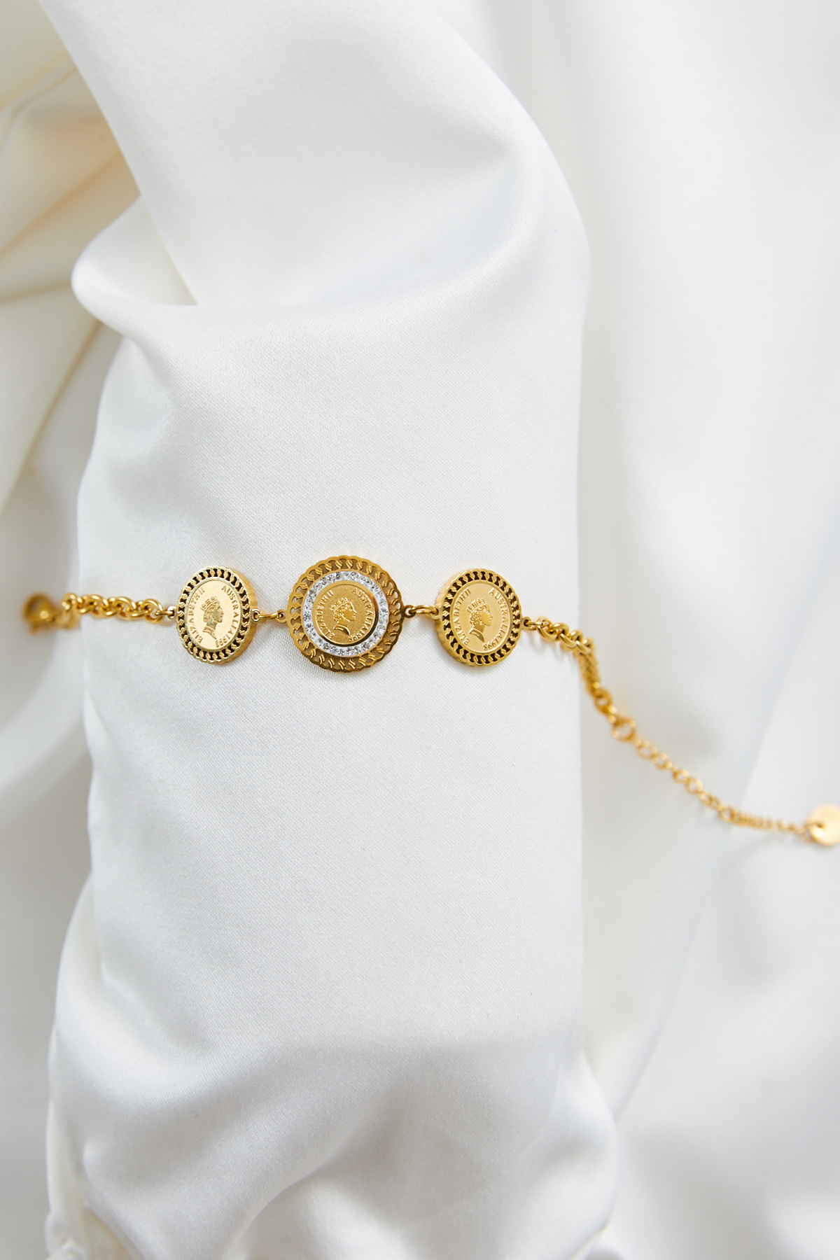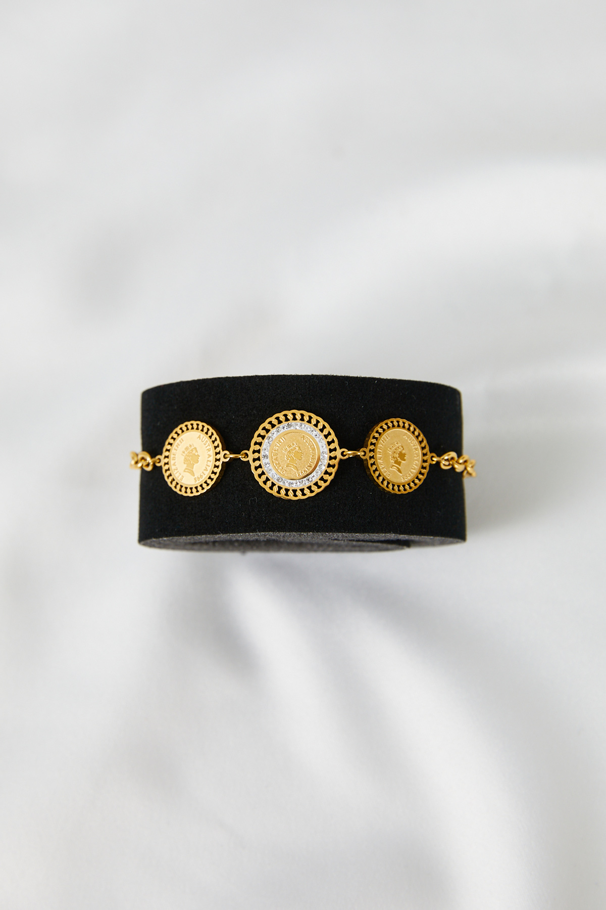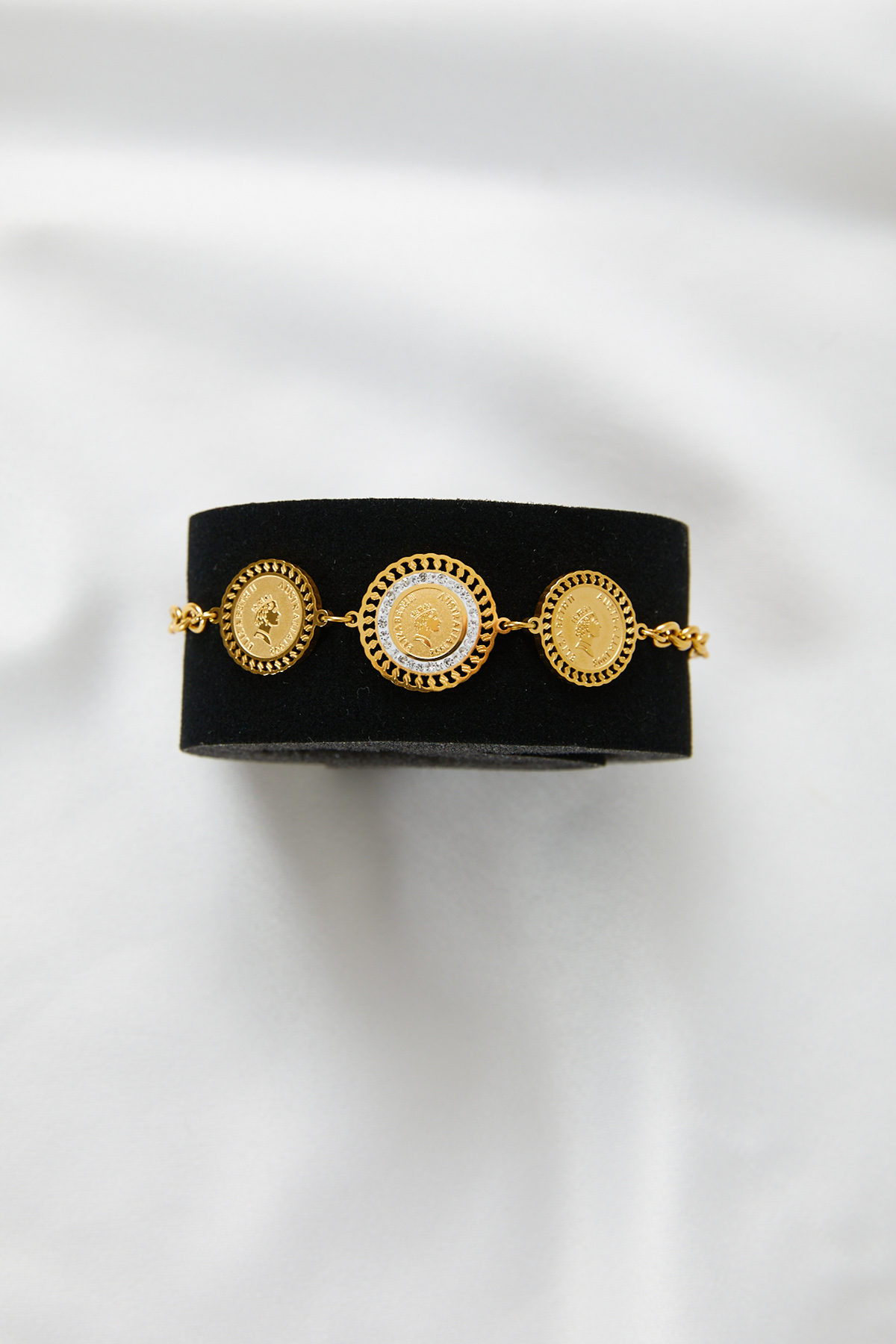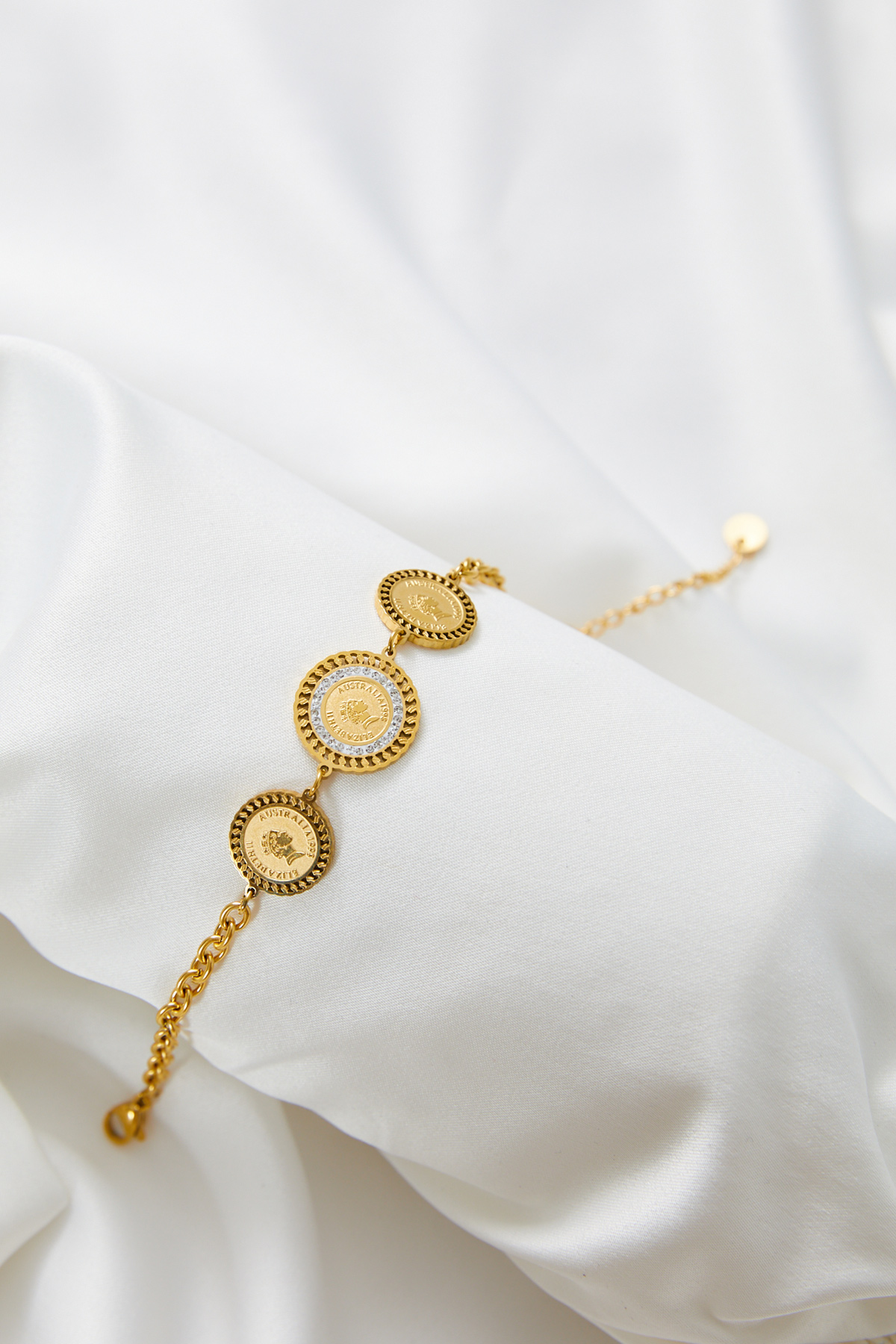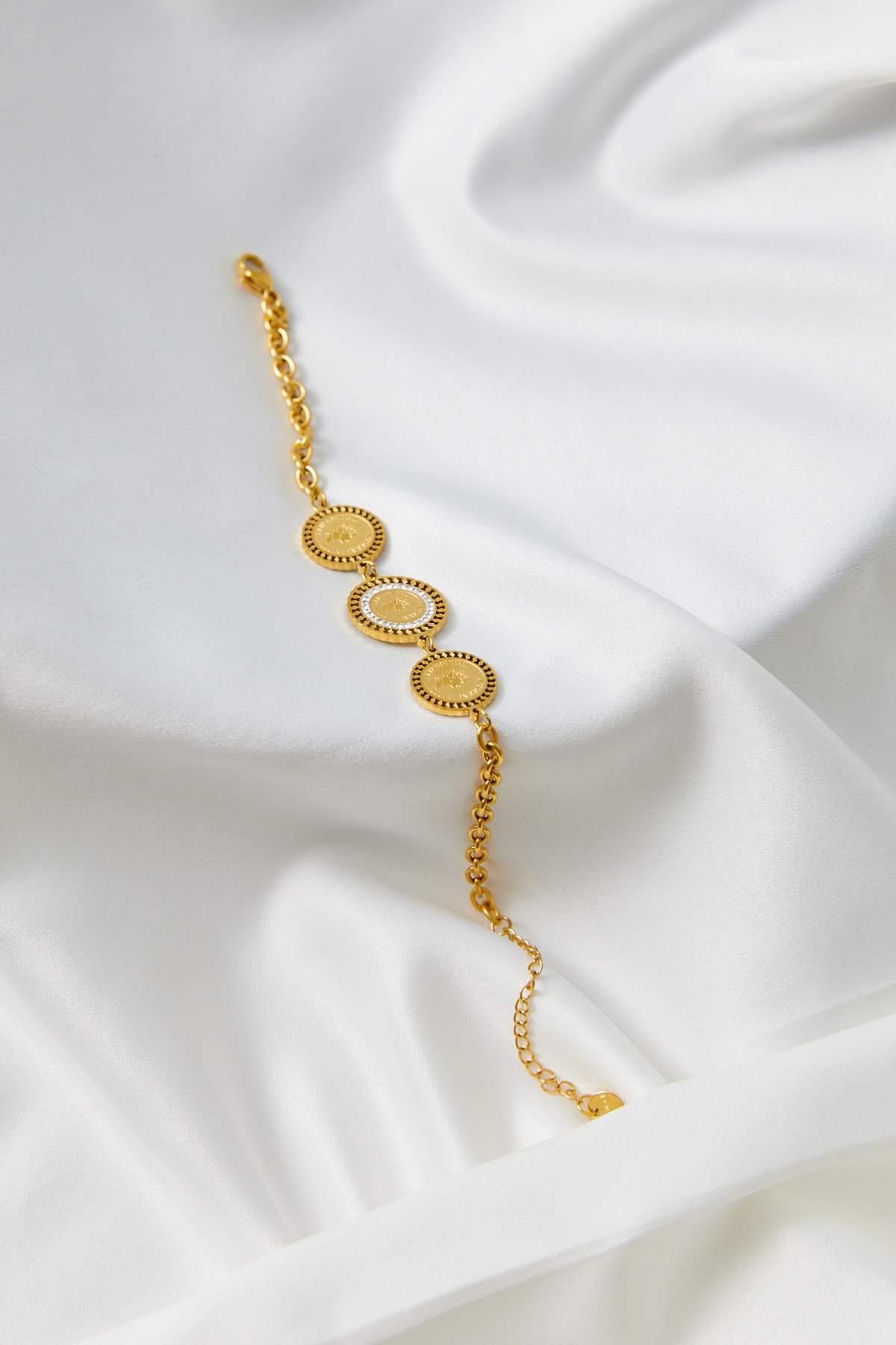 3`Lü Çeyrek Model Çelik Bileklik-Gold