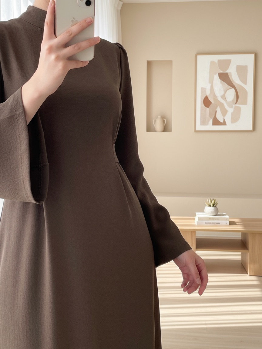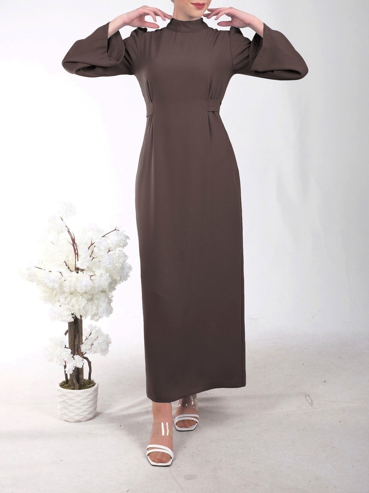 Hakim Yaka Belden Bağlamalı Elbise -K. Kahve-K. Kahve