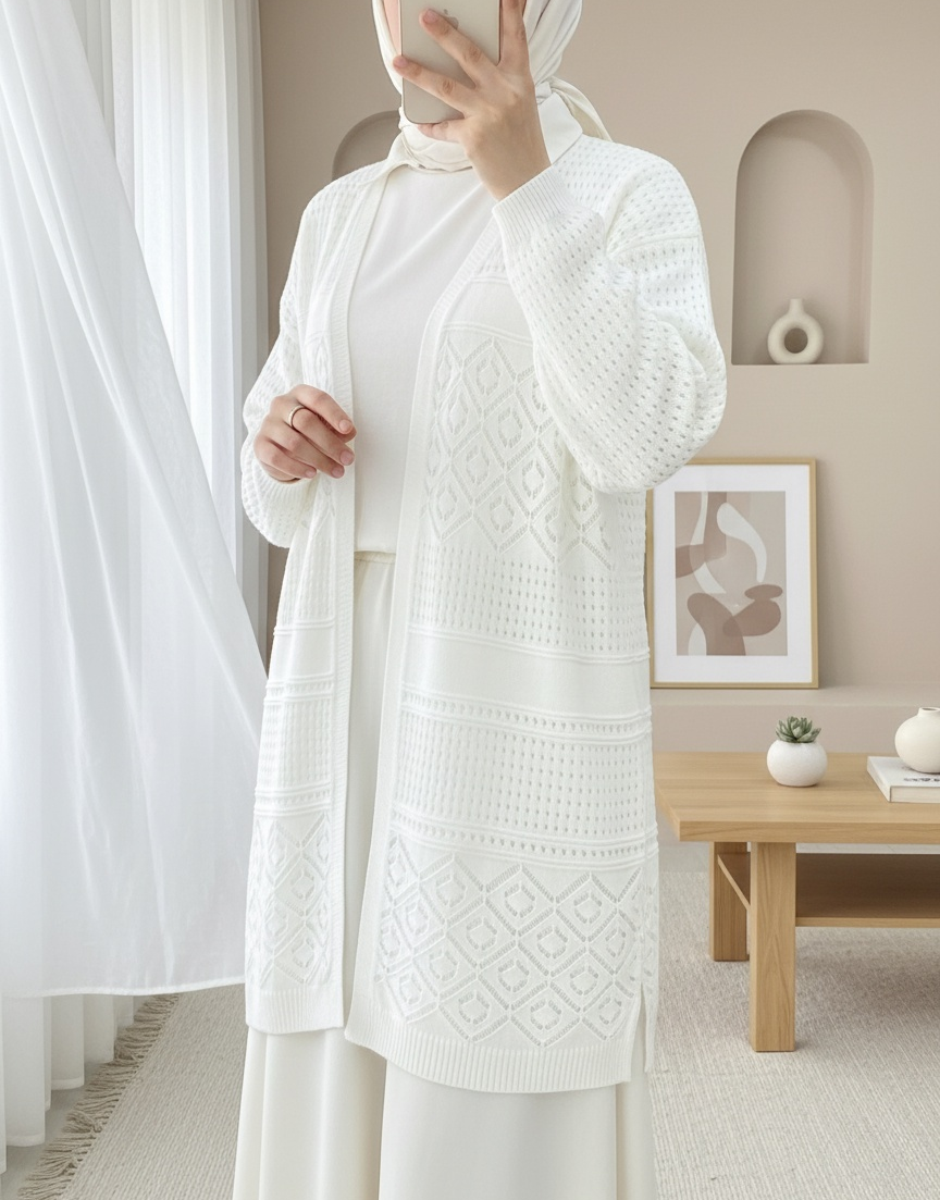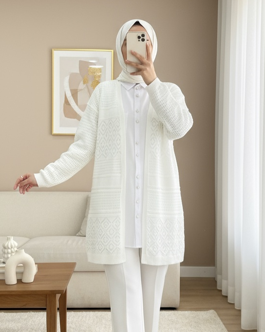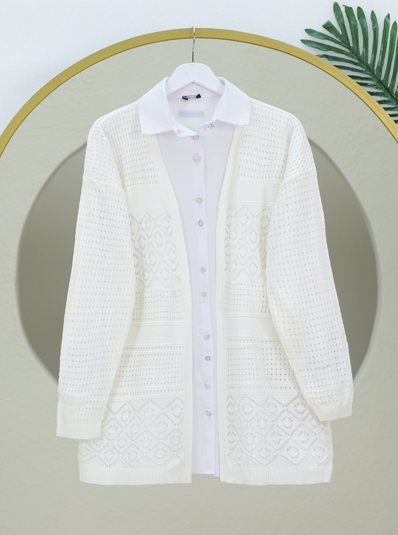 Ajurlu Mevsimlik Triko Hırka -Ekru-Ekru