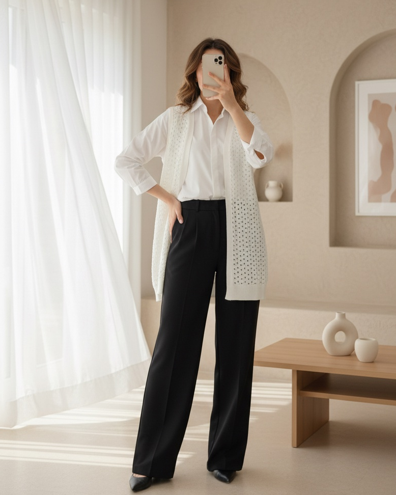 Ajurlu Yelek -Ekru-Ekru