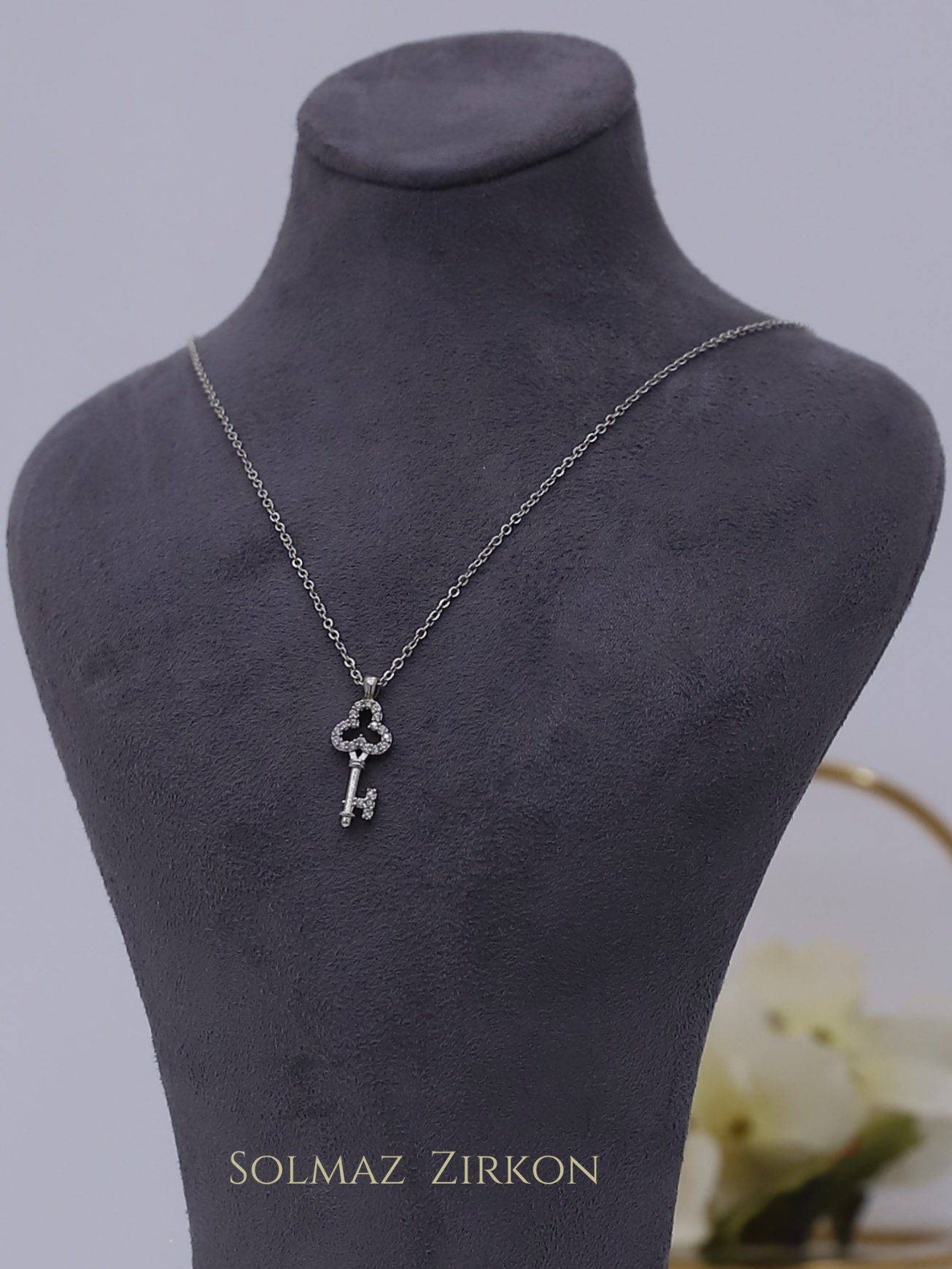 Anahtar Model Solmayan Zirkon Kolye -Gümüş-Gümüş