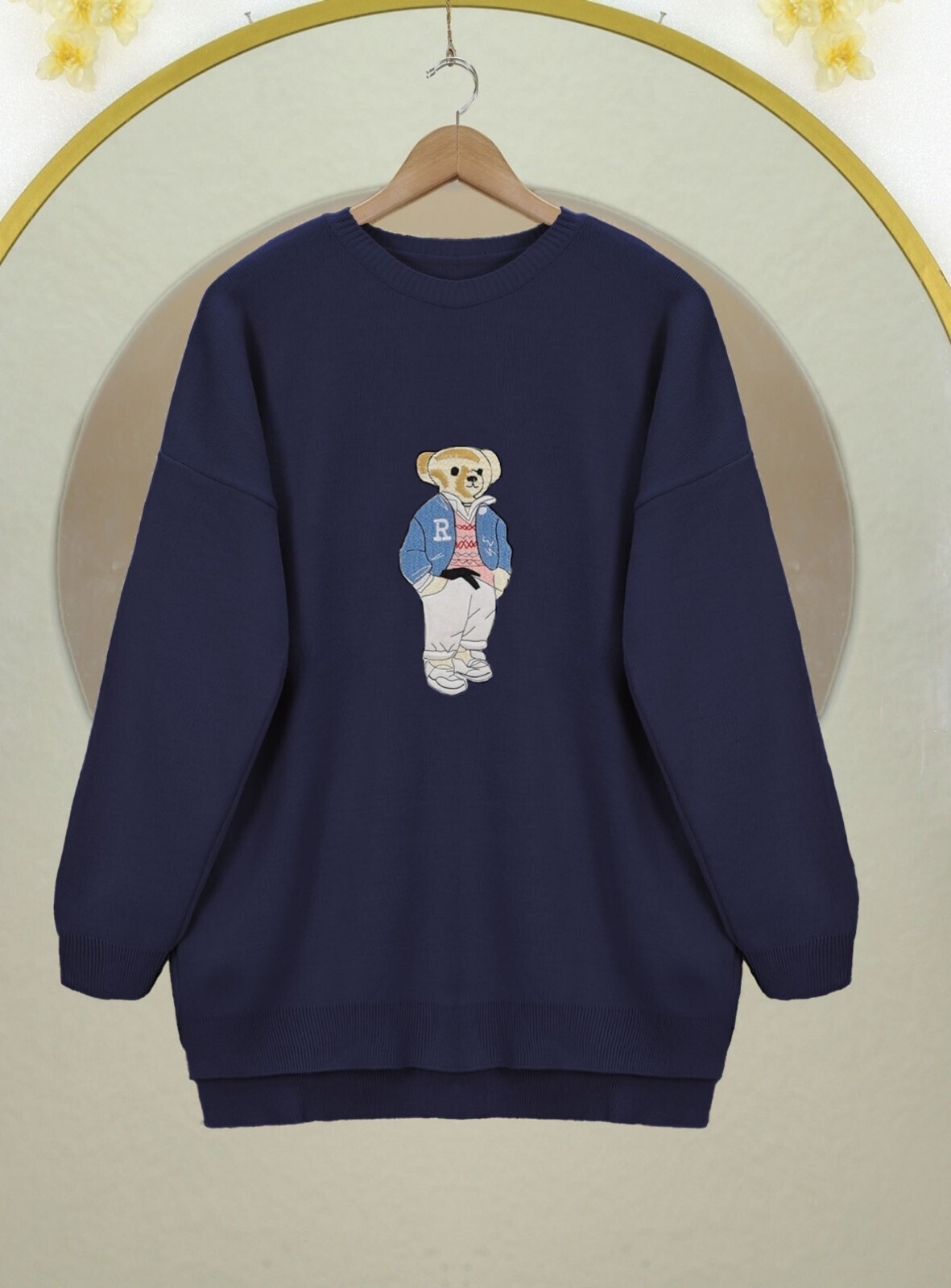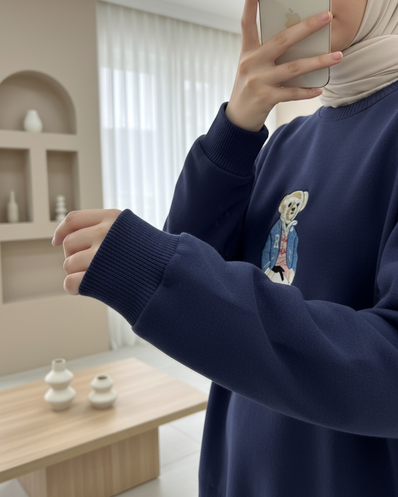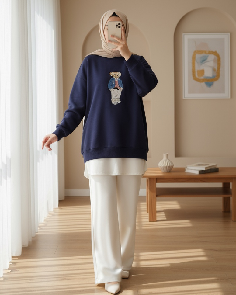 Ayıcık İşlemeli Arkası Uzun Triko Kazak -Laci-Lacivert
