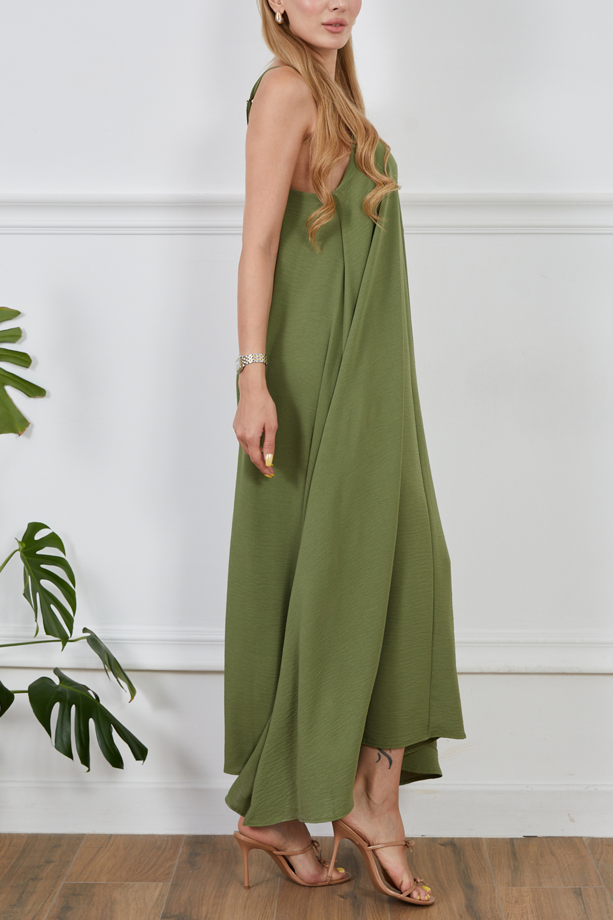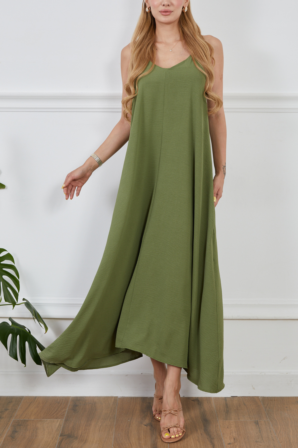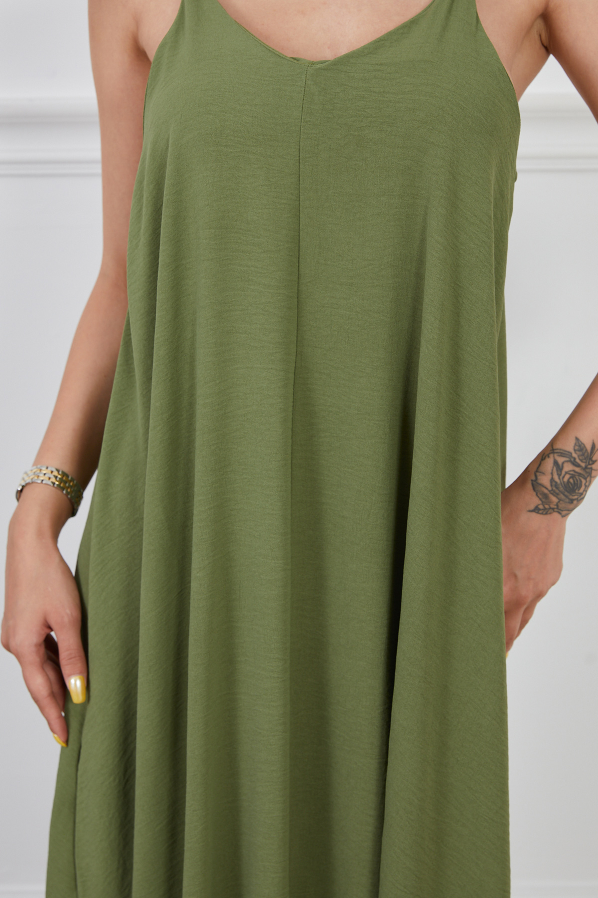 Ayrobin Kumaş Ayarlanabilir Askılı Elbise-Yeşil