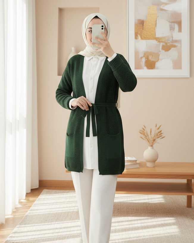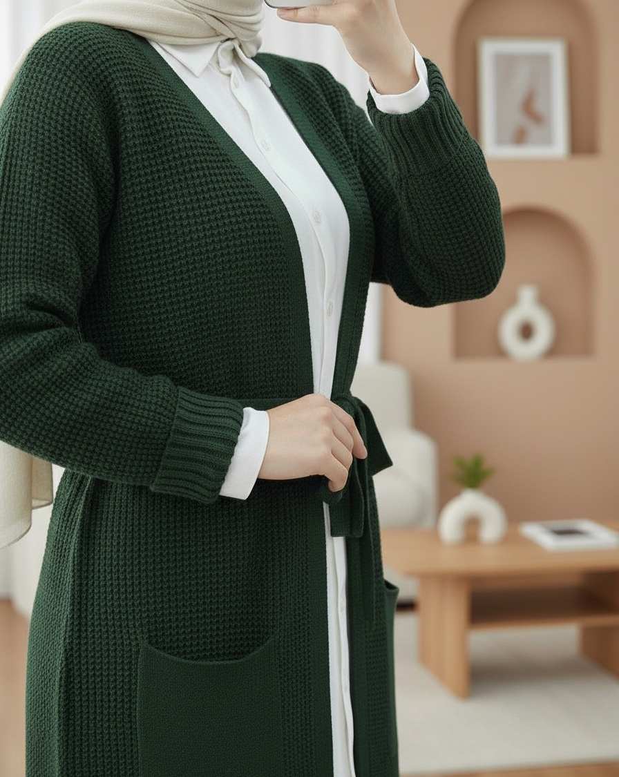Bağcıklı Prinç Örgü Triko Hırka -Zümrüt-Zümrüt