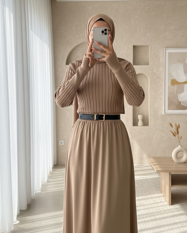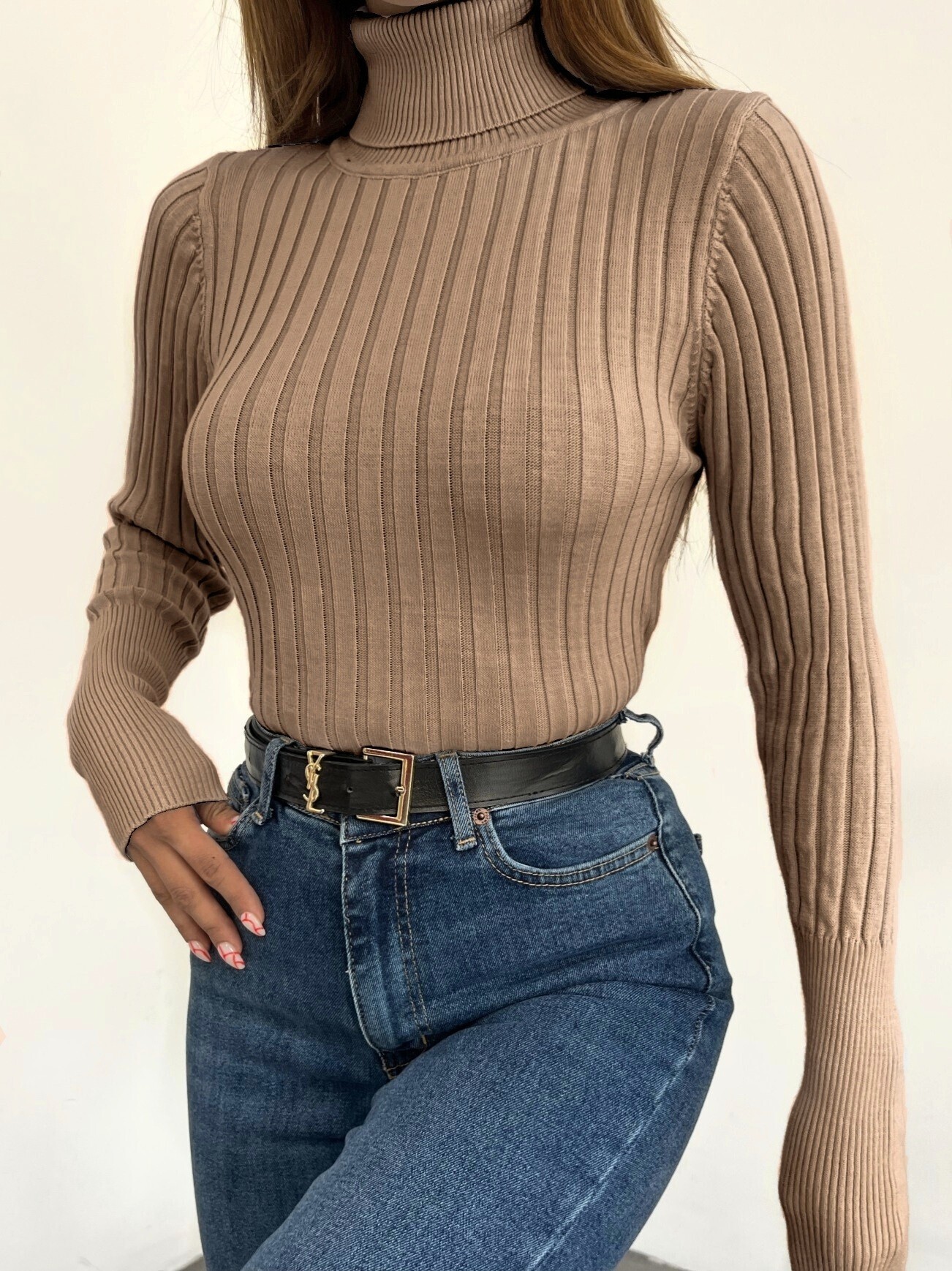 Balıkçı Yaka Fitilli Triko Kazak -Vizon-Vizon