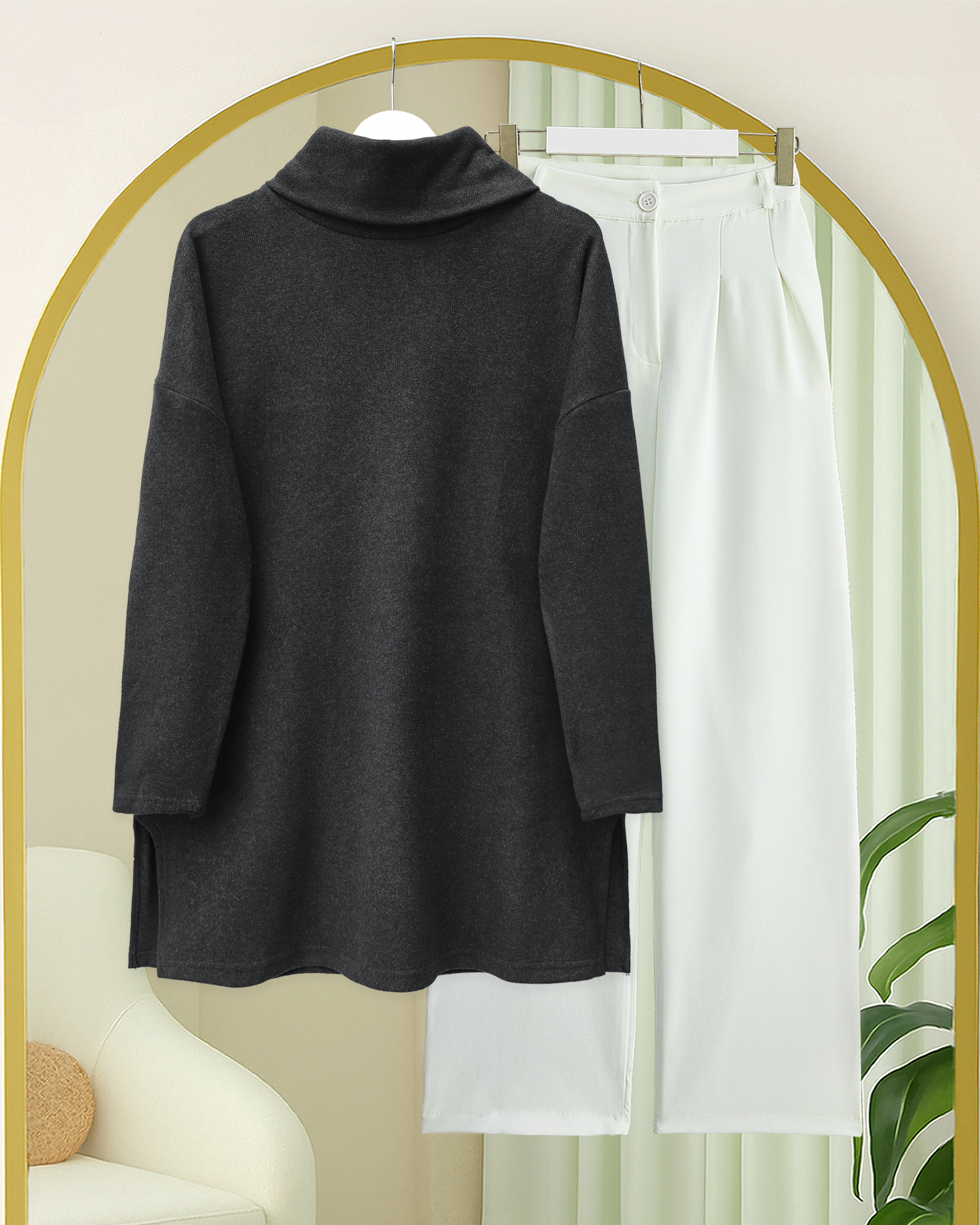 Balıkçı Yaka Yırtmaçlı Selanik Tunik -Antrasit-Antrasit