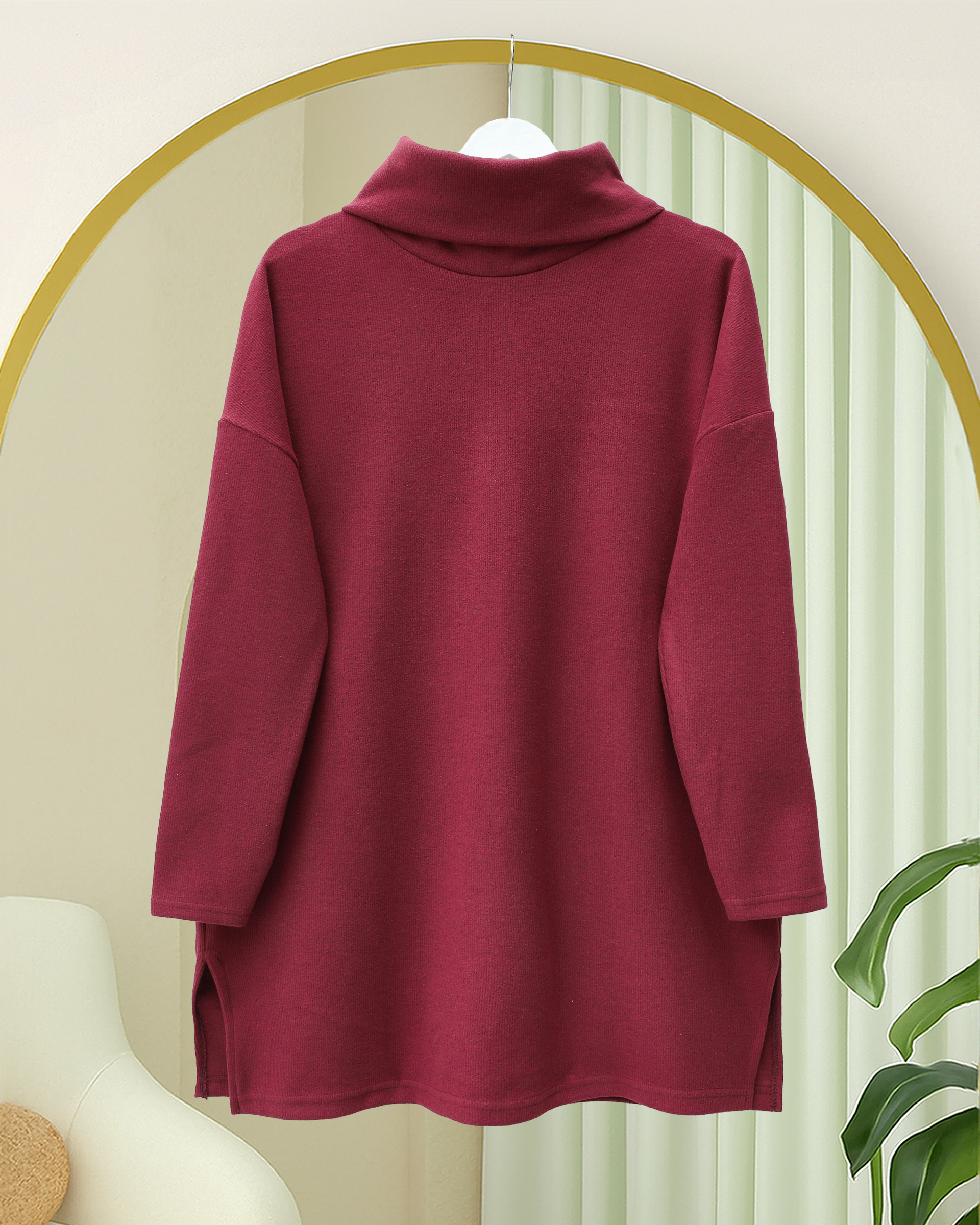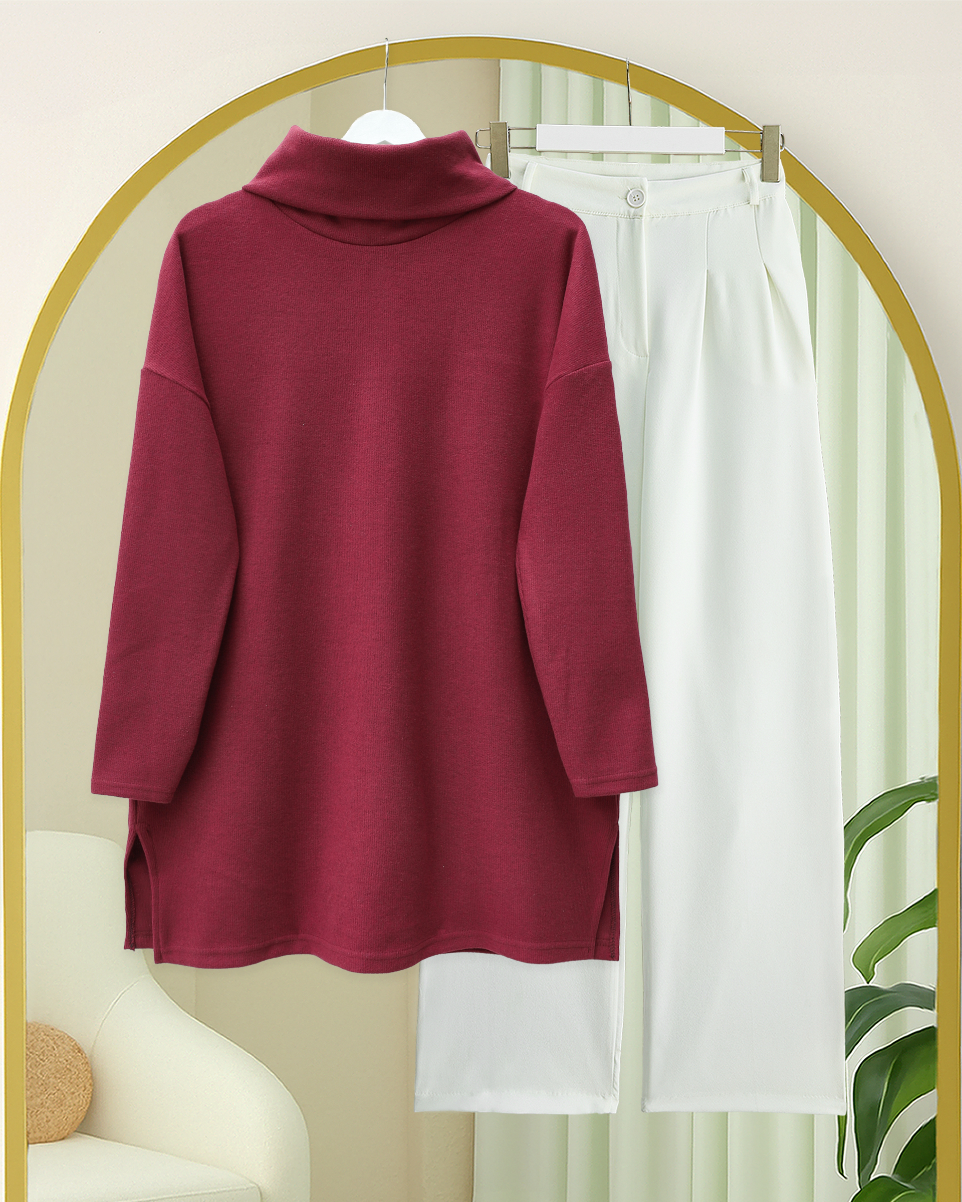 Balıkçı Yaka Yırtmaçlı Selanik Tunik -Bordo-Bordo