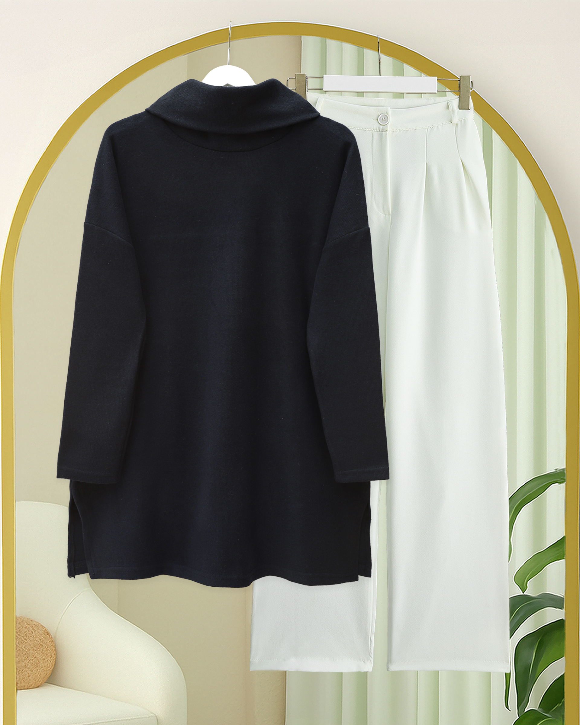 Balıkçı Yaka Yırtmaçlı Selanik Tunik -Laci-Lacivert
