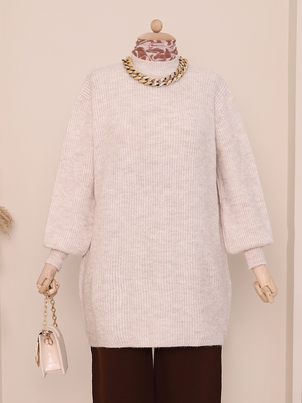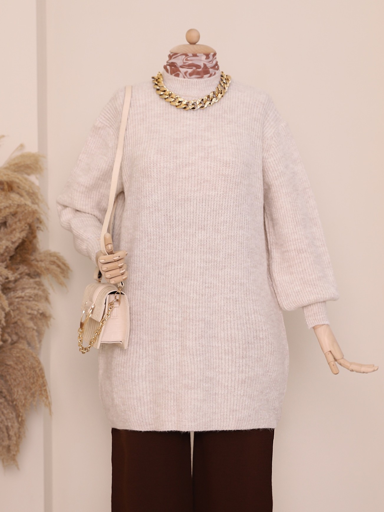 Balon Kol Yumoş Örme Triko Tunik -Taş-Taş