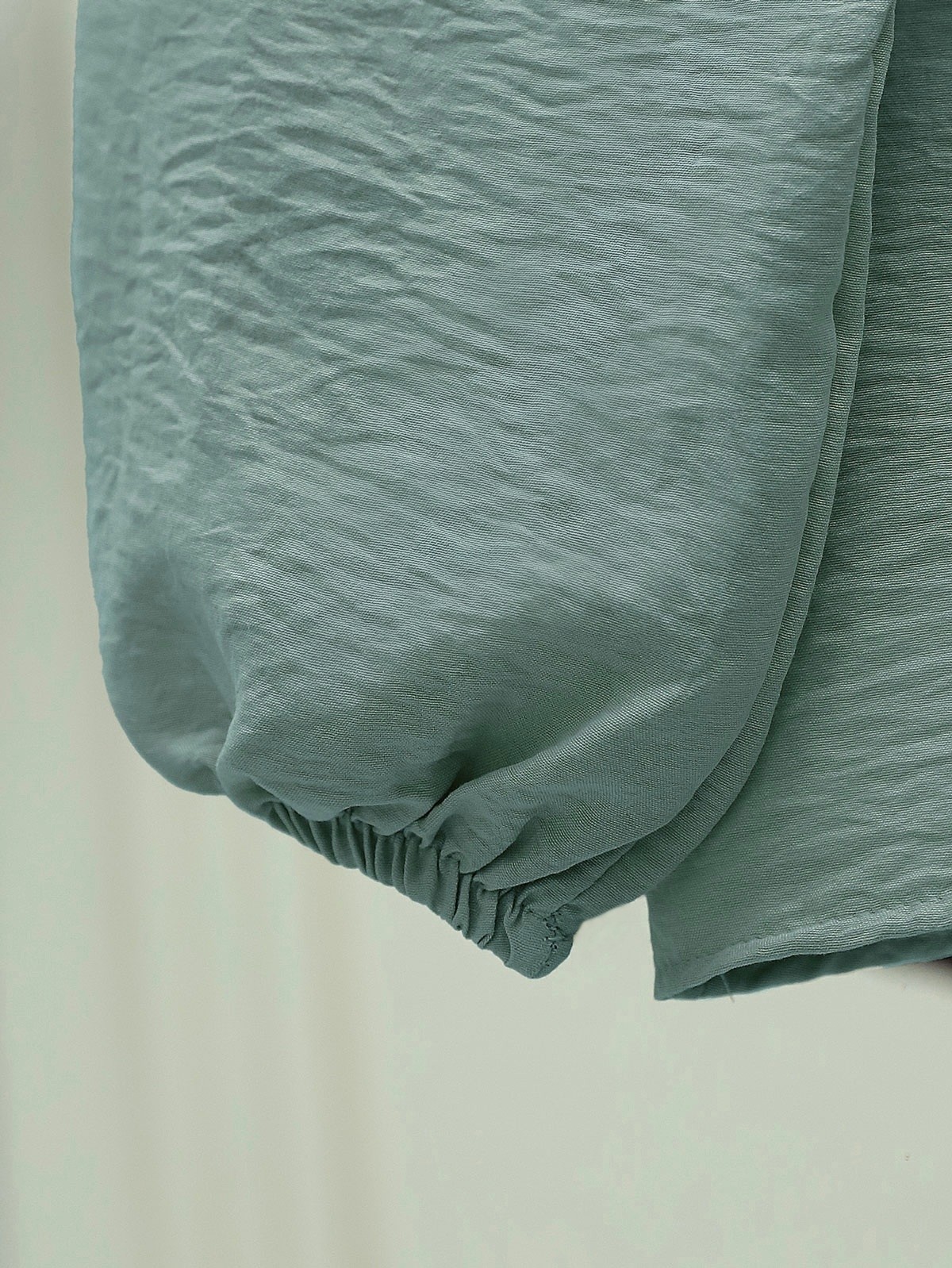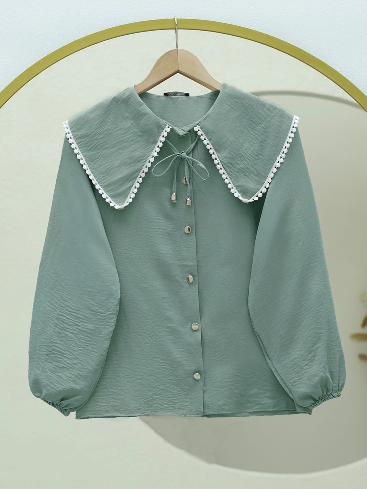Bebe Yaka Dantelli Kolu Lastikli Gömlek -Mint-Mint