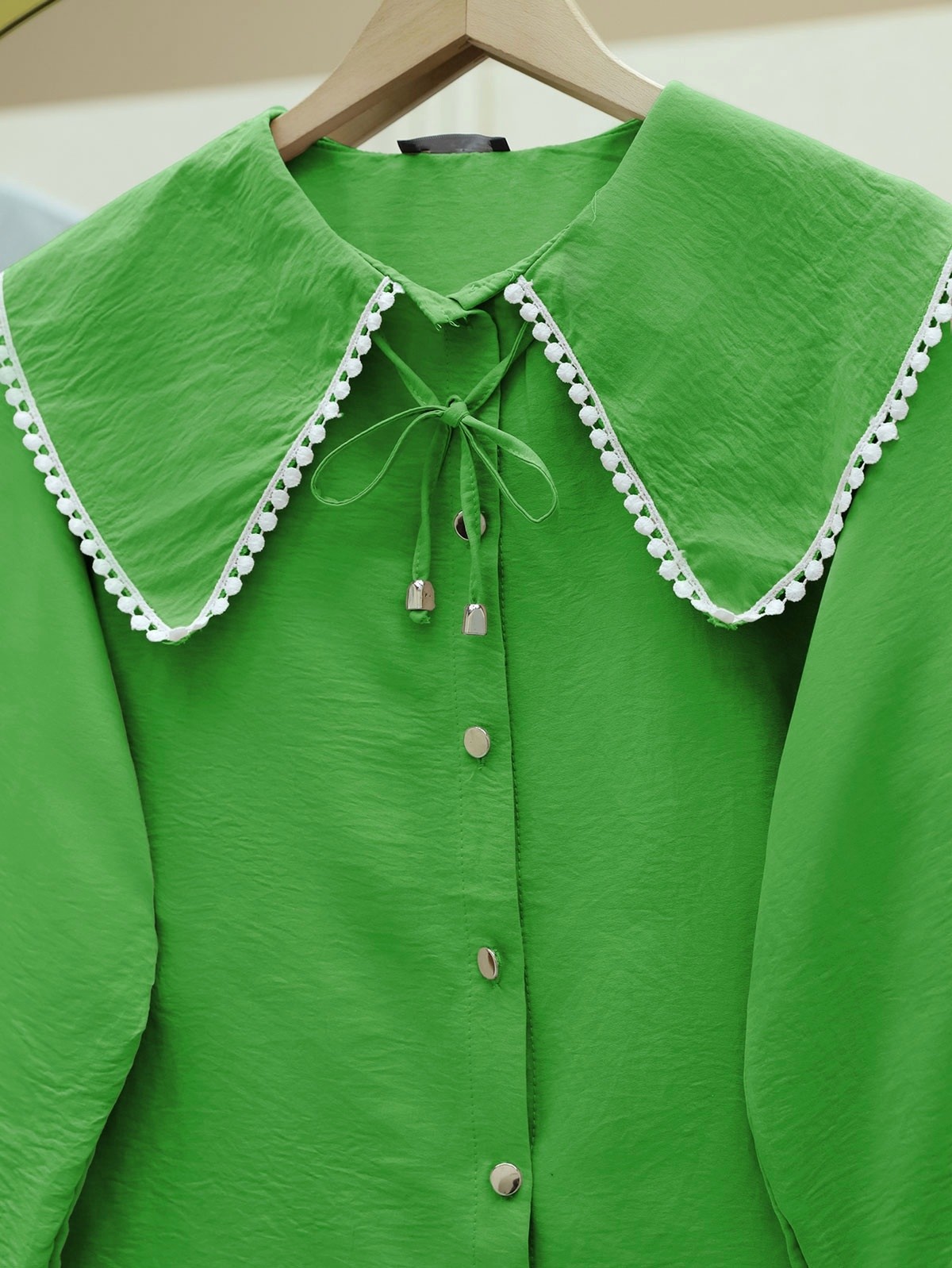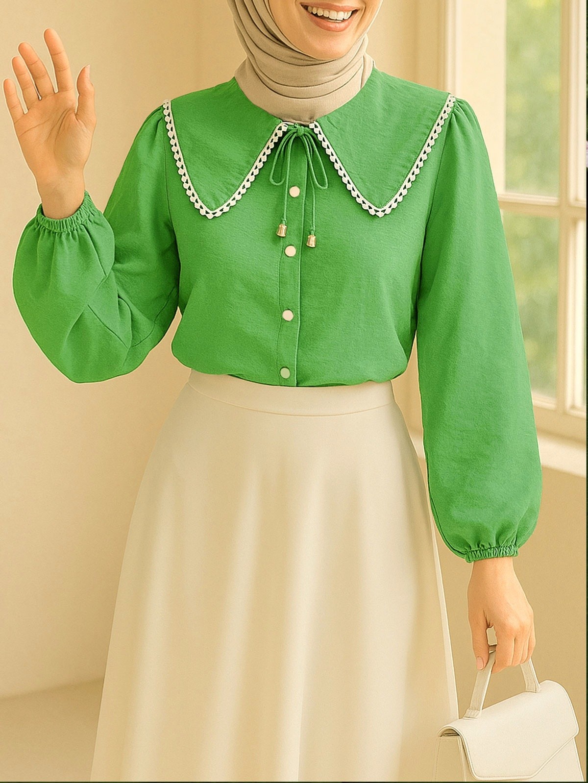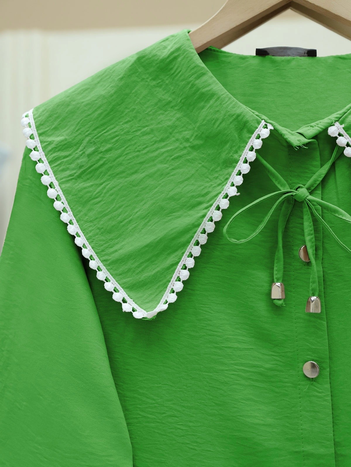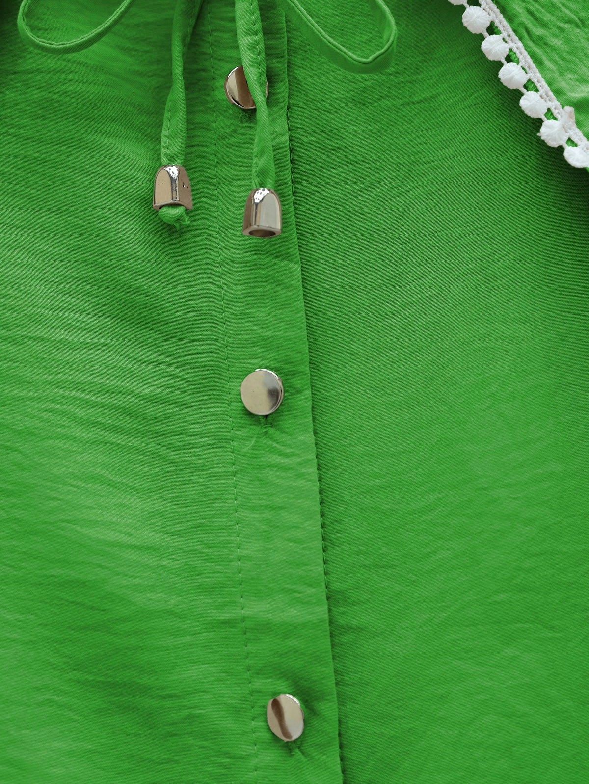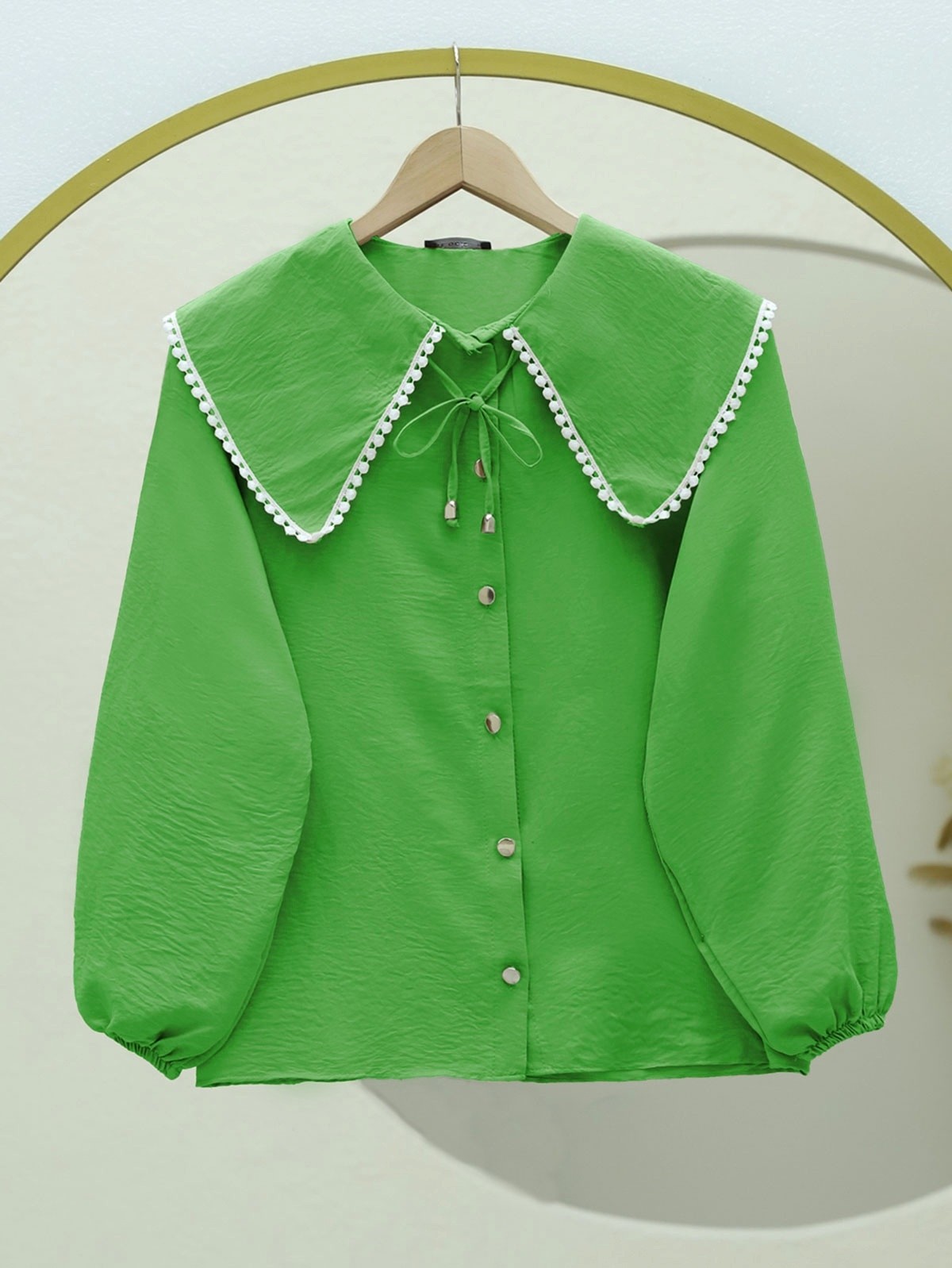 Bebe Yaka Dantelli Kolu Lastikli Gömlek -Yeşil-Yeşil