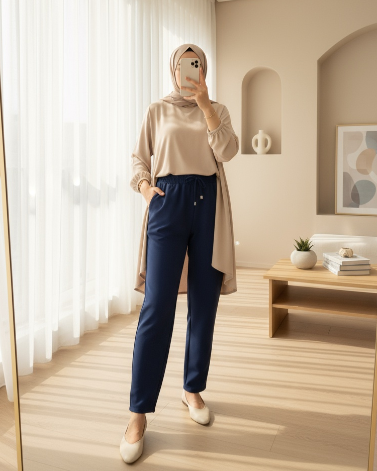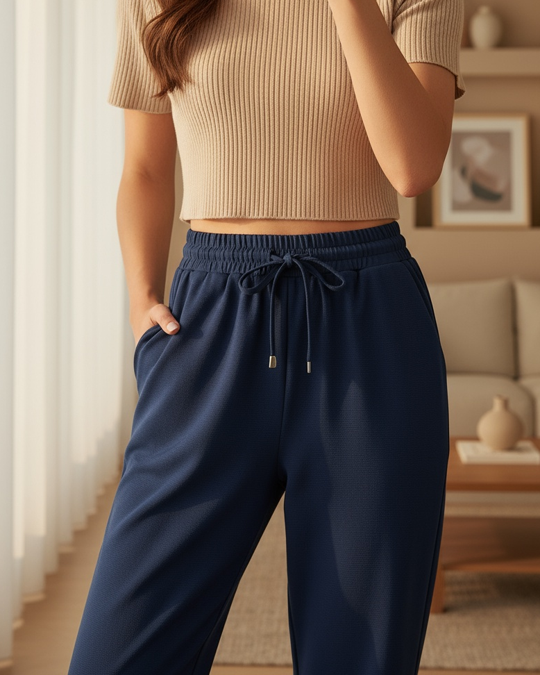Beli Bağcıklı Dar Paça Pantolon -Petrol-Petrol