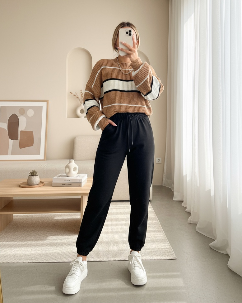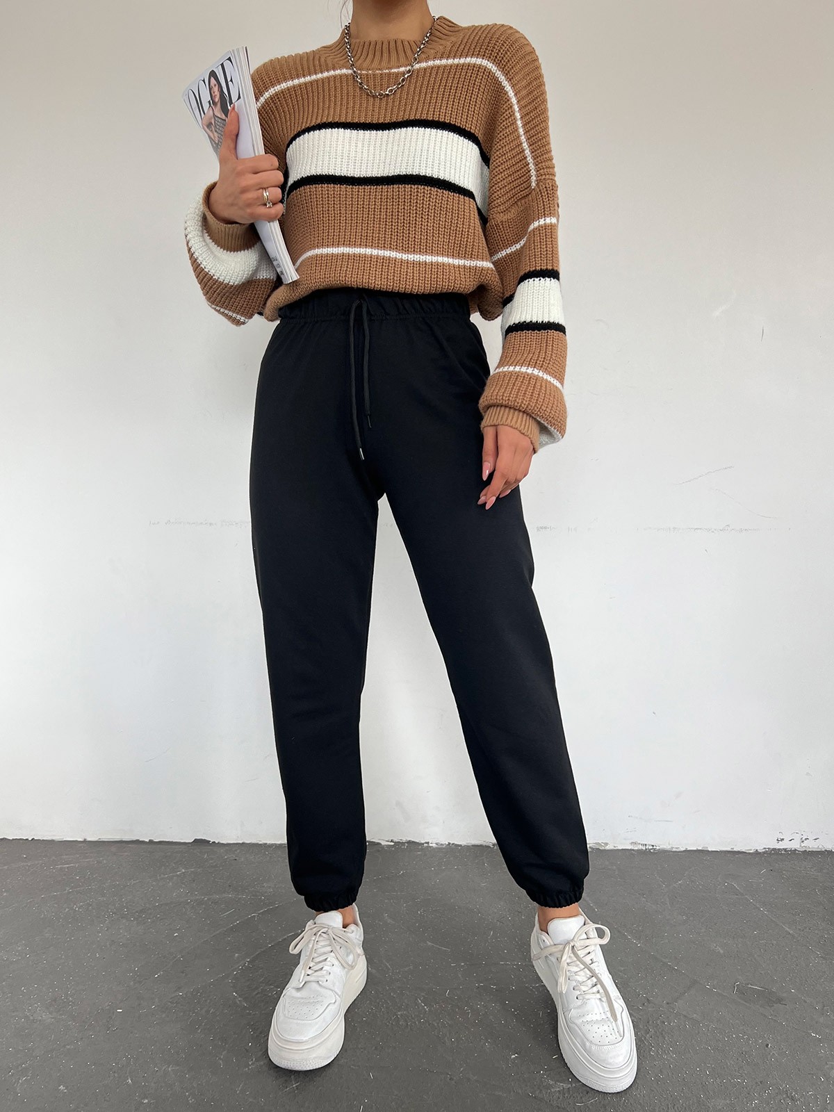 Beli Bağcıklı Eşofman Altı -Siyah-Siyah