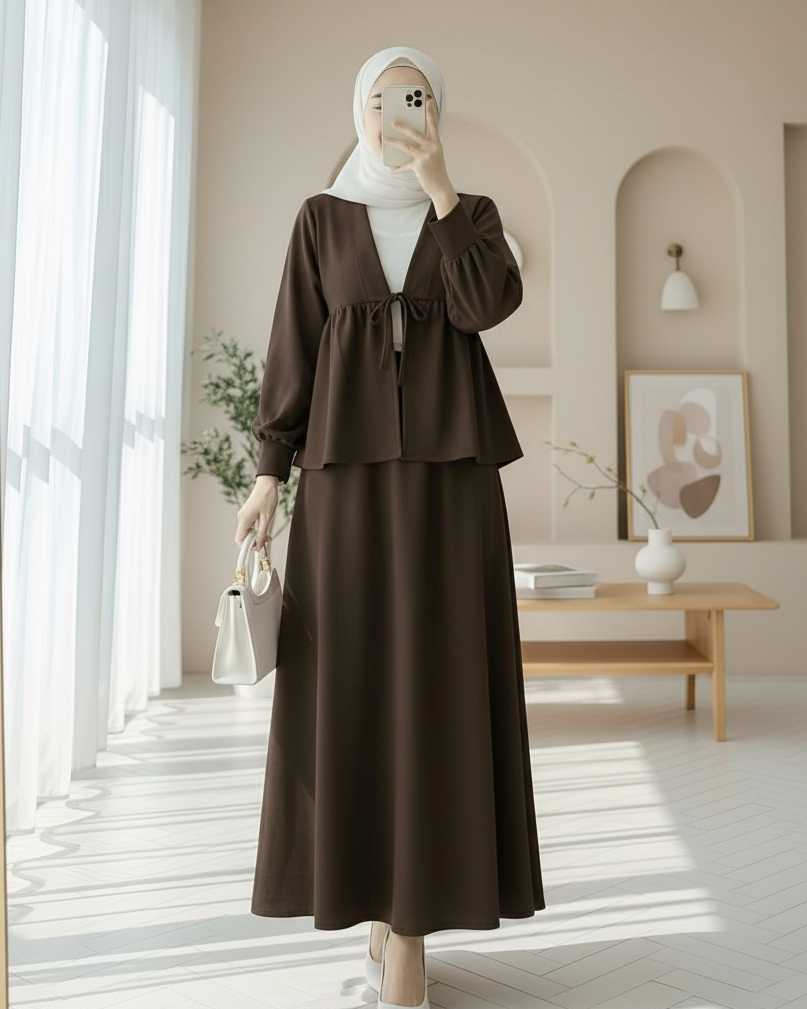 Beli Bağlamalı Etekli Oysho Takım -K. Kahve-K. Kahve