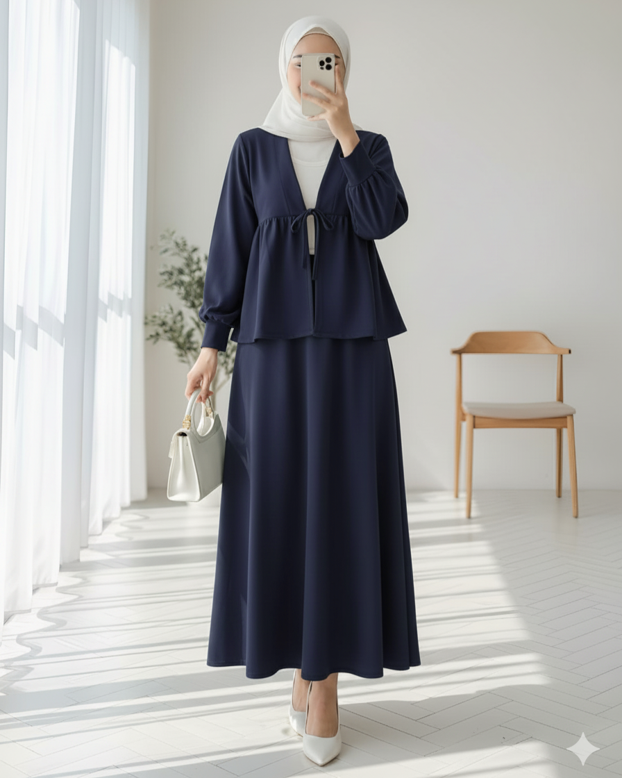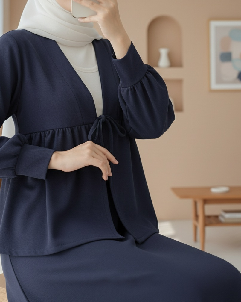 Beli Bağlamalı Etekli Oysho Takım -Laci-Lacivert