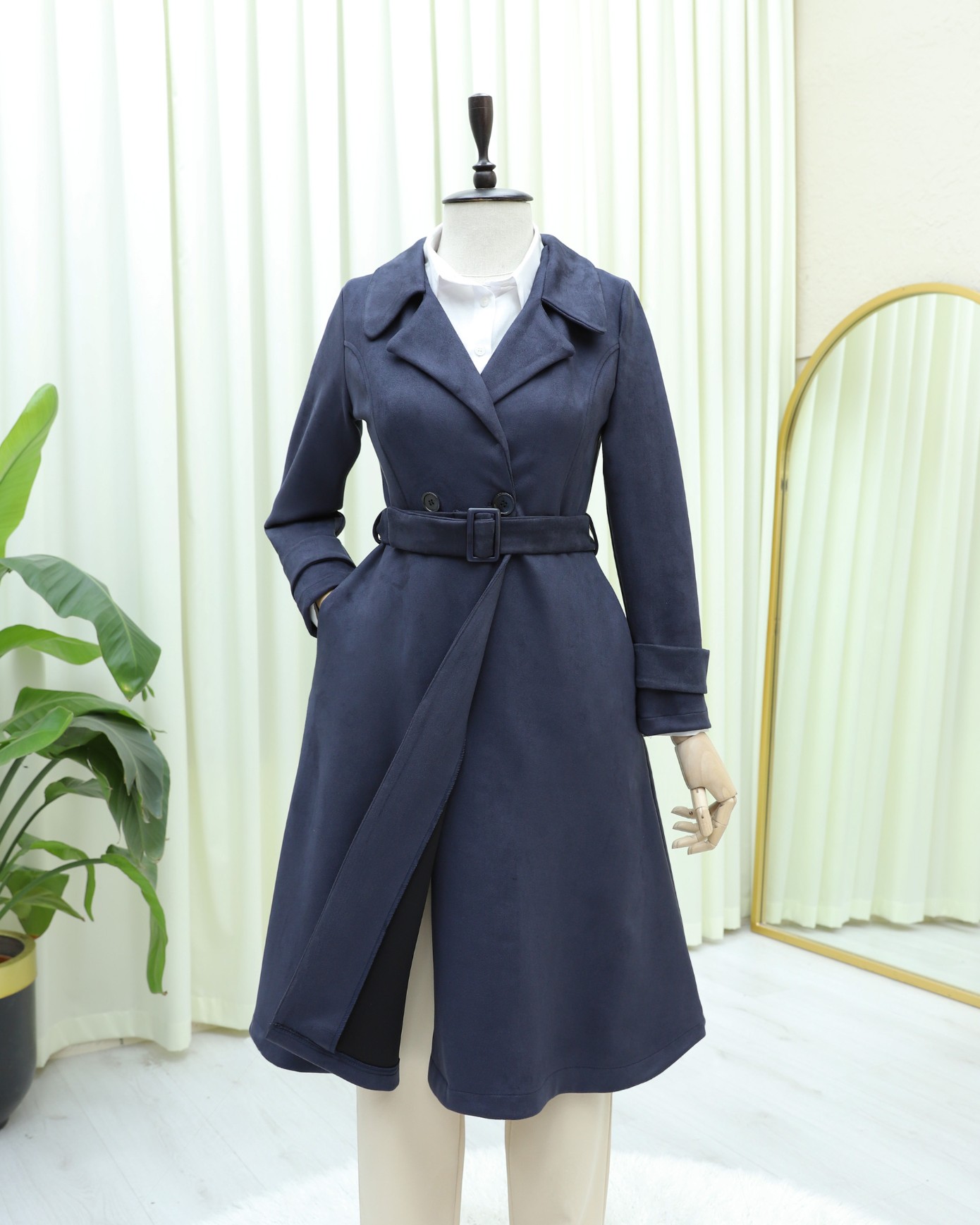 Beli Kemerli Cepli Süet Kap -Laci-Lacivert
