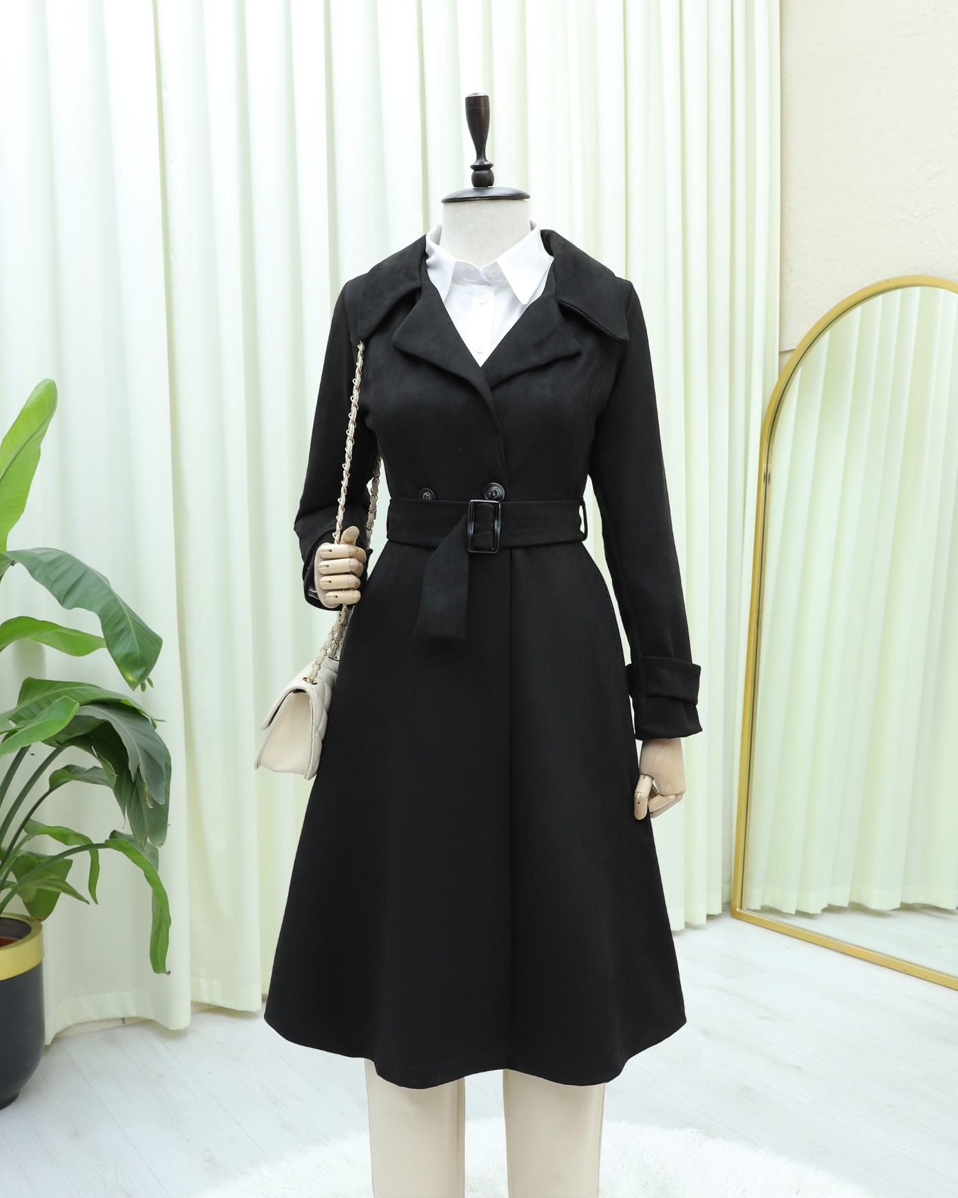 Beli Kemerli Cepli Süet Kap -Siyah-siyah