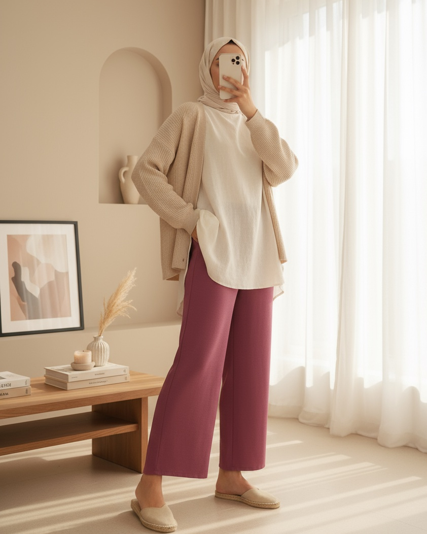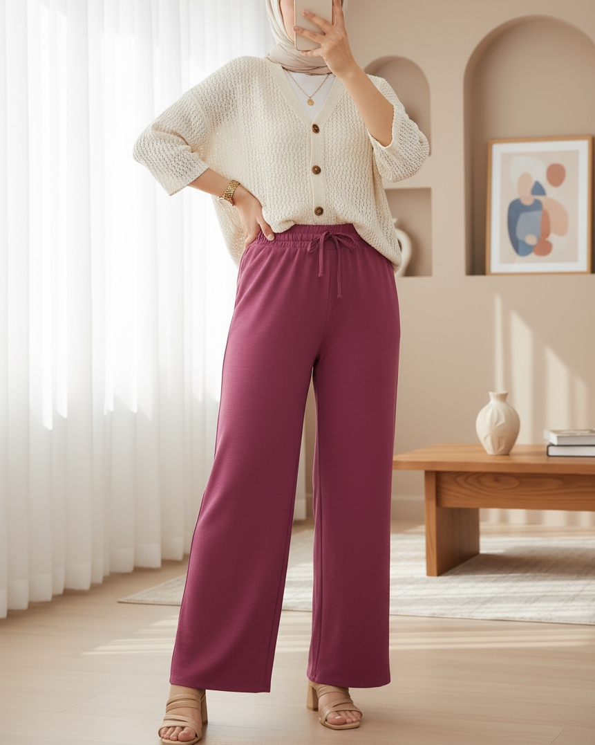 Beli Lastikli Bağcık Detaylı Ayrobin Pantolon -Mürdüm-Mürdüm