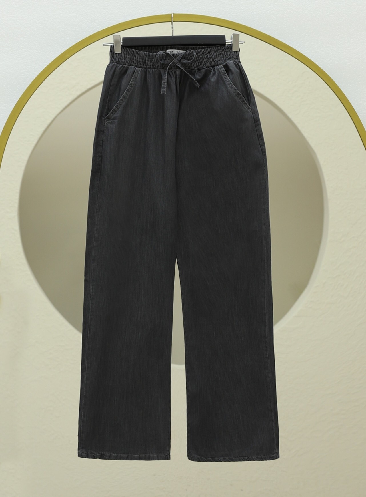 Beli Lastikli Cepli Bol Paça Kot Pantolon -Antrasit-Antrasit