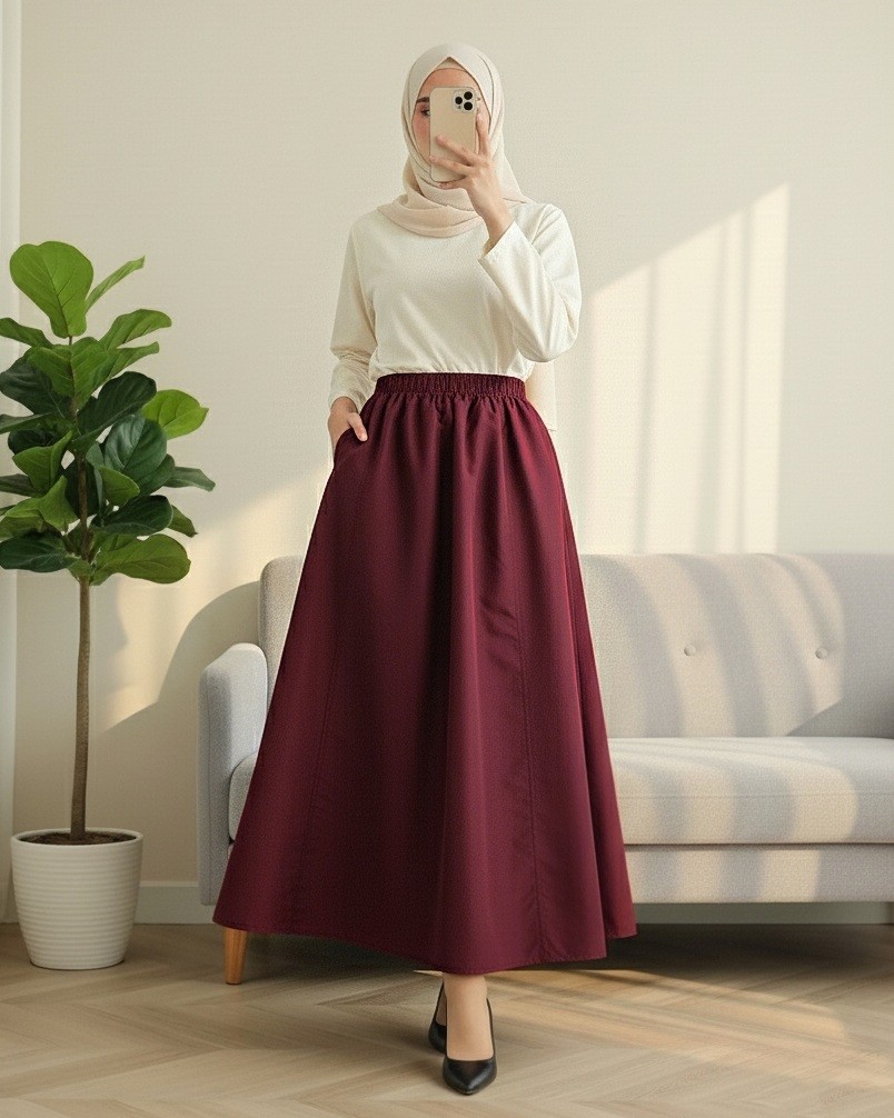 Beli Lastikli Cepli Paraşüt Etek -Bordo-Bordo