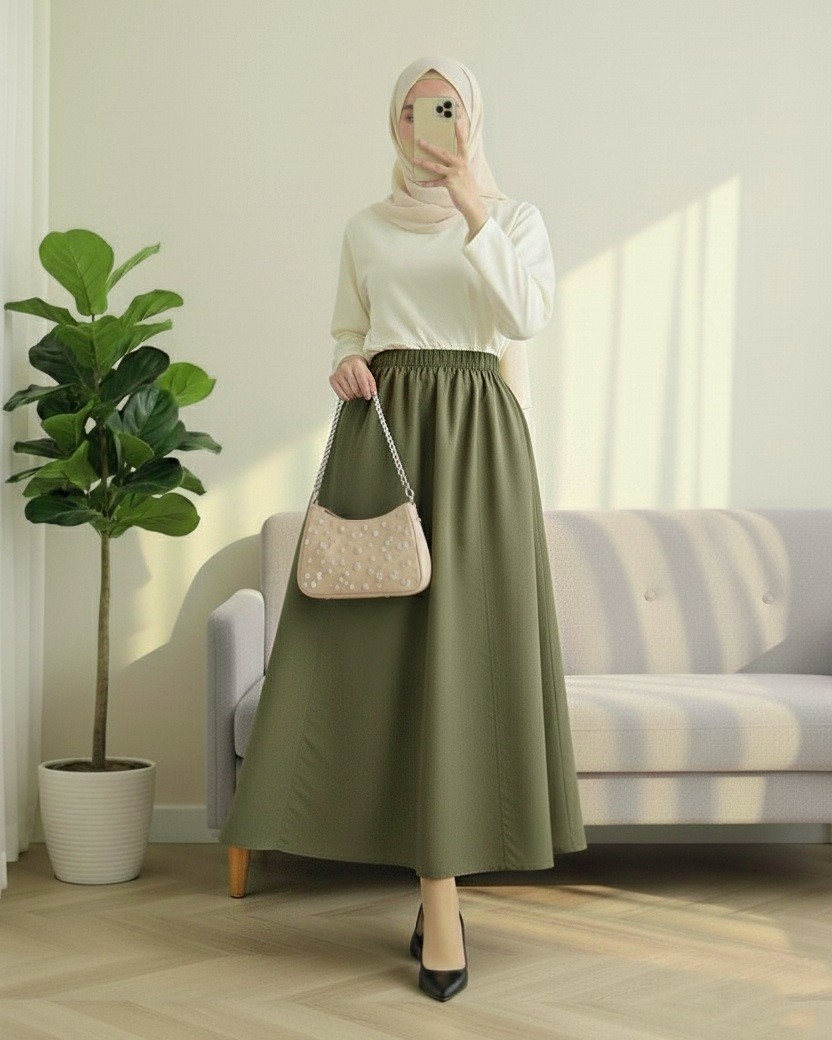 Beli Lastikli Cepli Paraşüt Etek -Haki-Haki