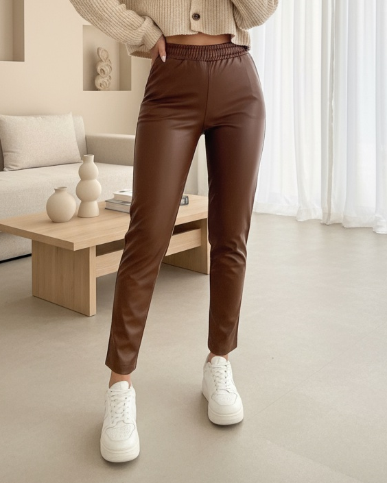 Beli Lastikli Deri Pantolon -Taba-Taba
