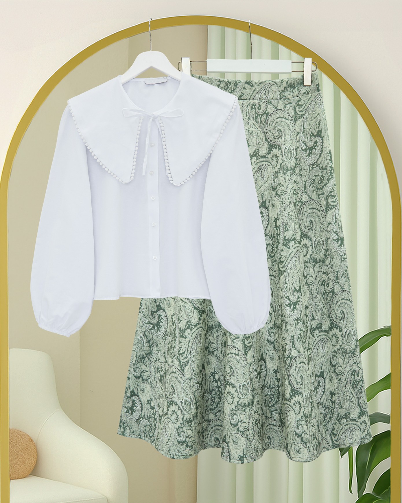 Beli Lastikli Etnik Desen Kloş etek -Yeşil-Yeşil