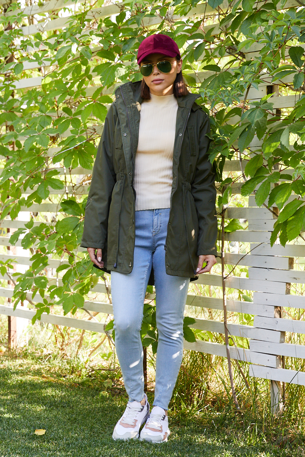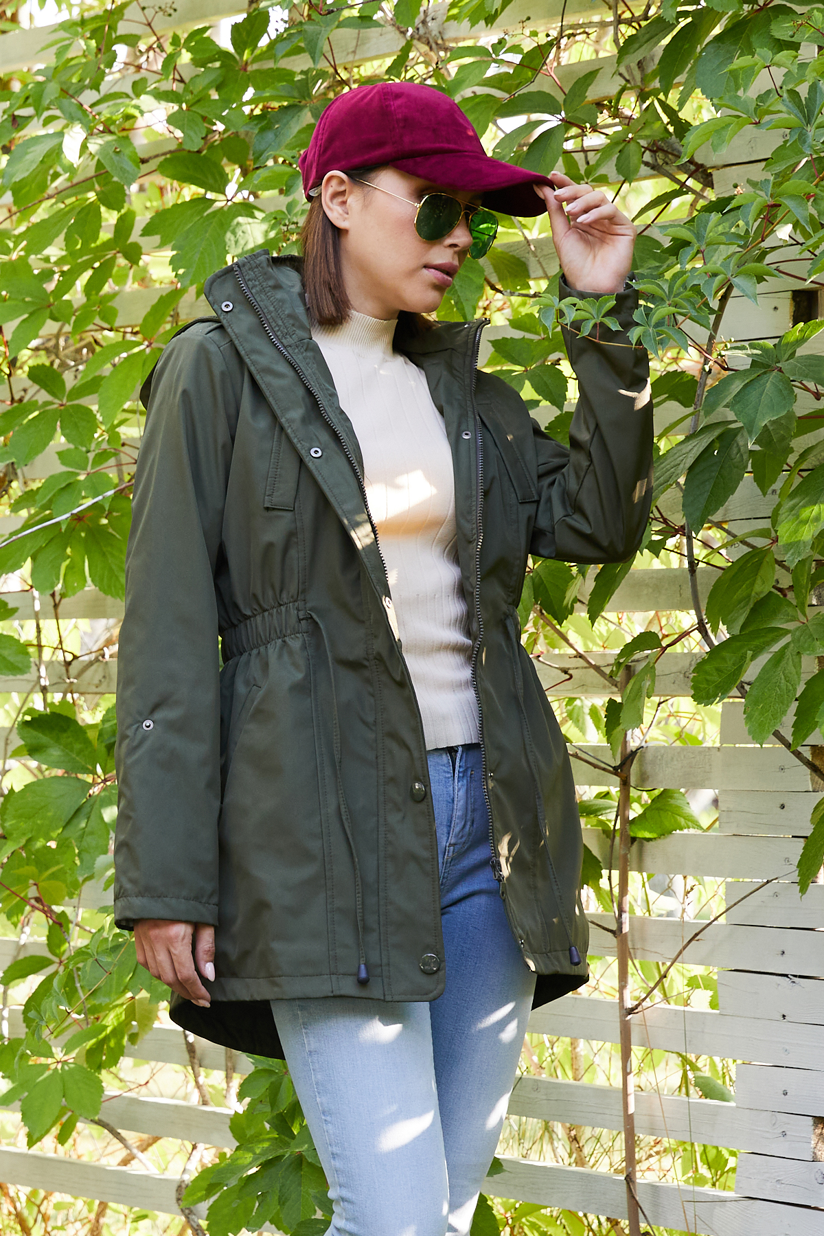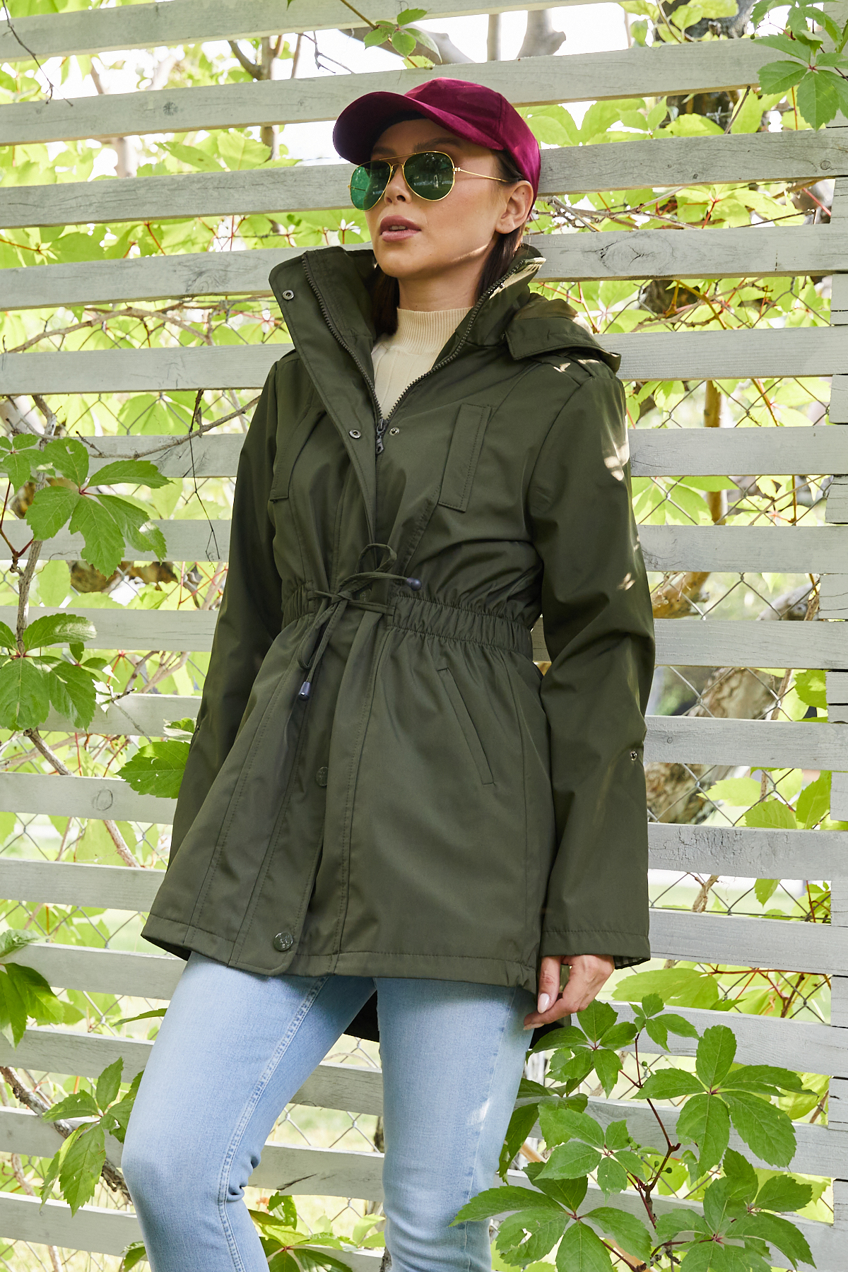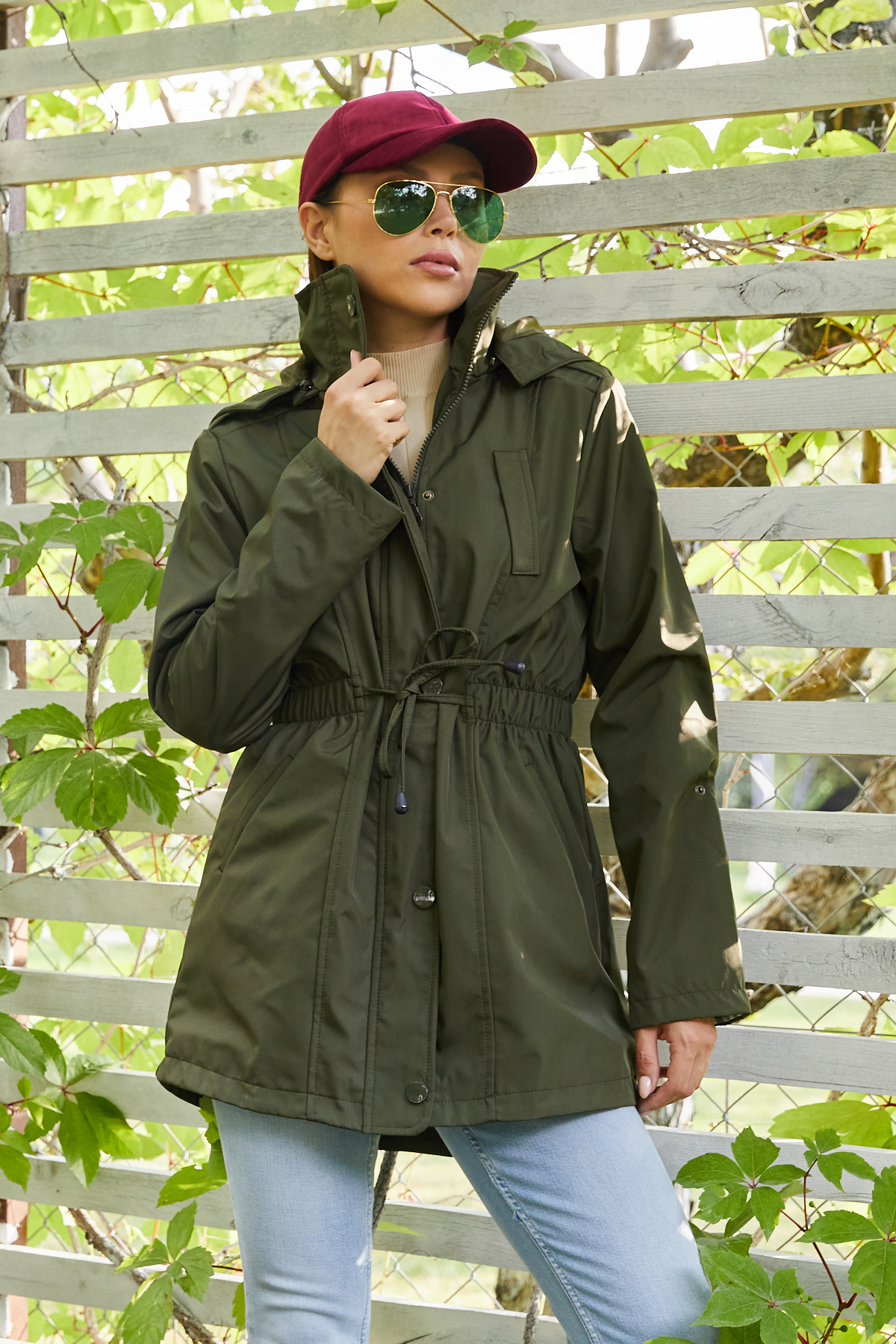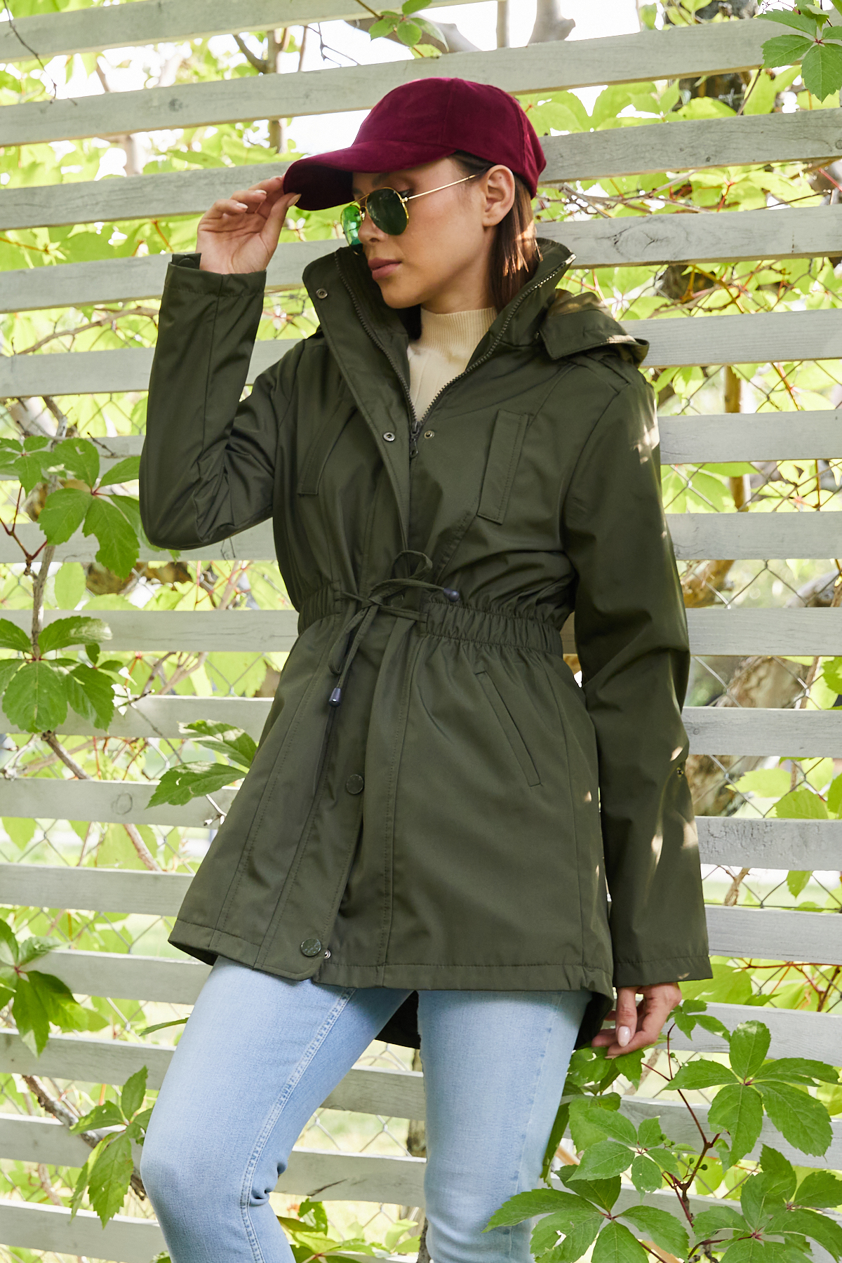 Beli Lastikli Kapüşonlü Trençkot-Haki