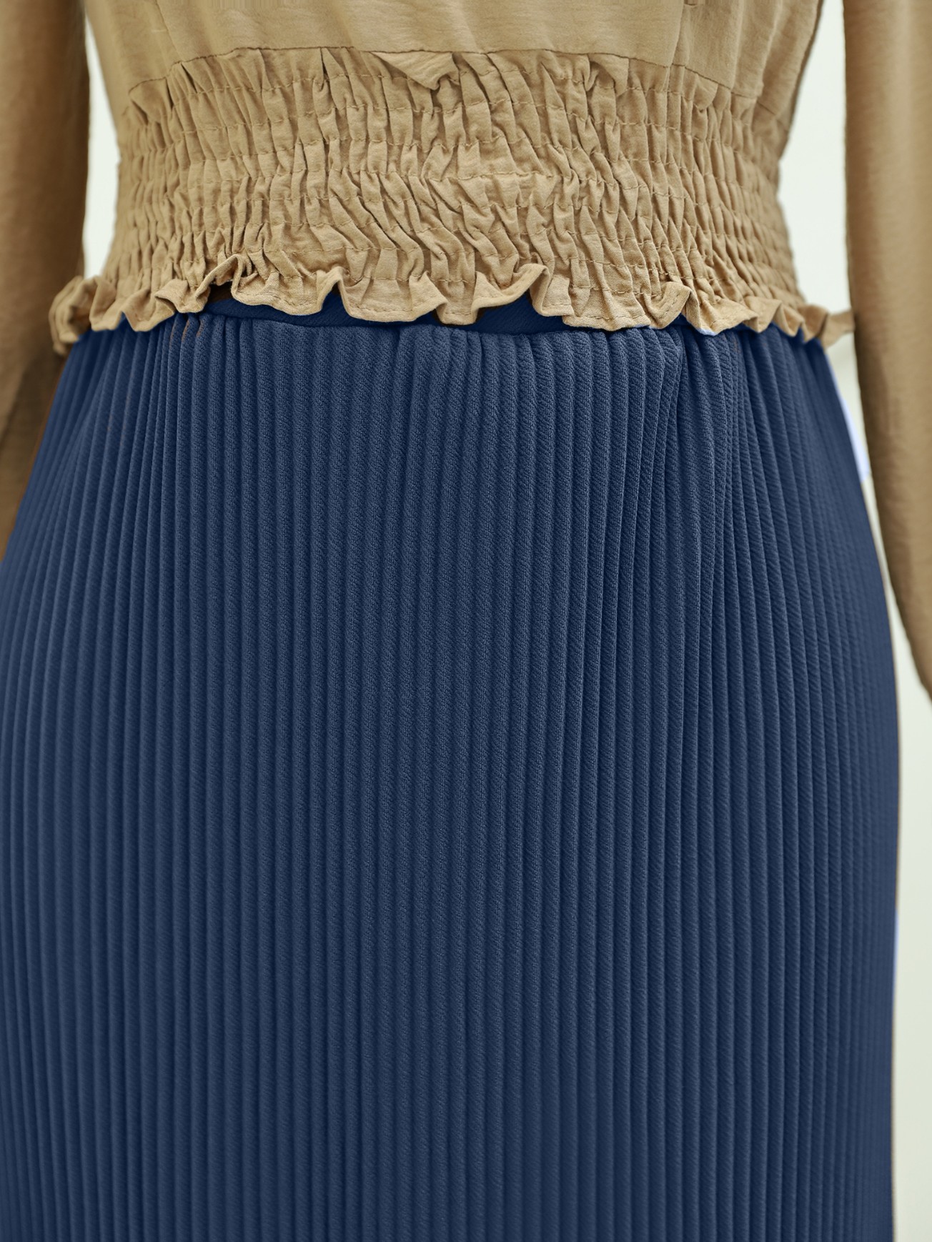 Beli Lastikli Pliseli Kalem Etek -İndigo-İndigo