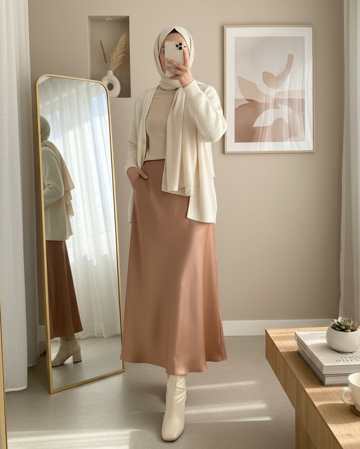Beli Lastikli Saten Etek -Tarçın-Tarçın