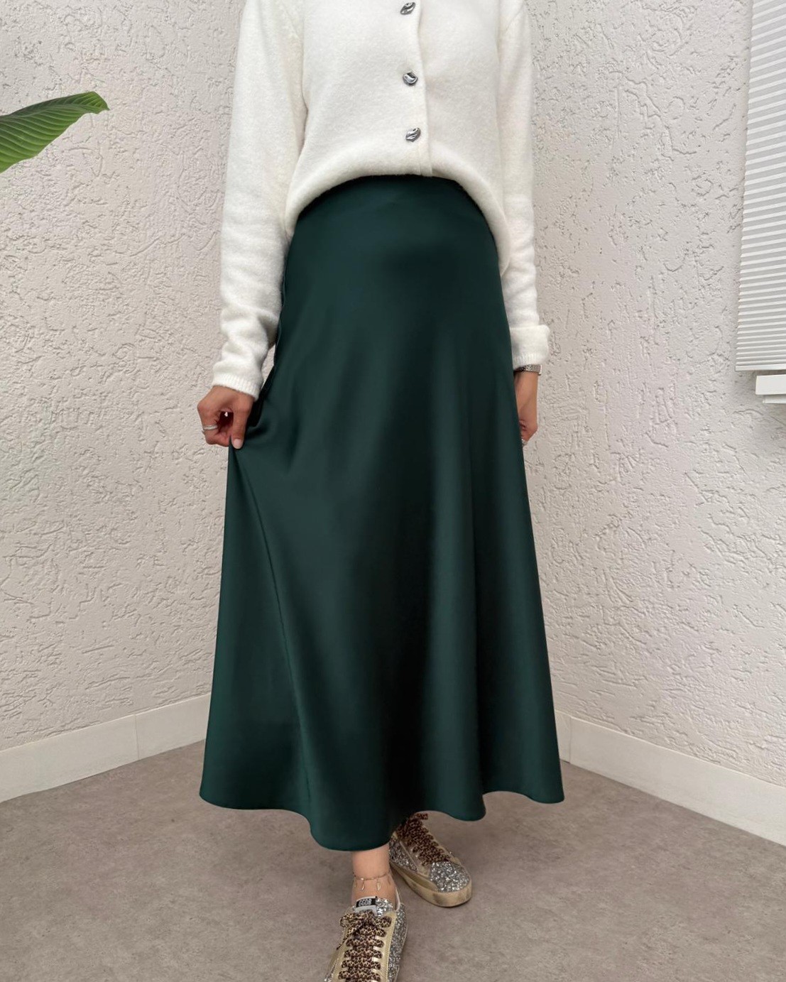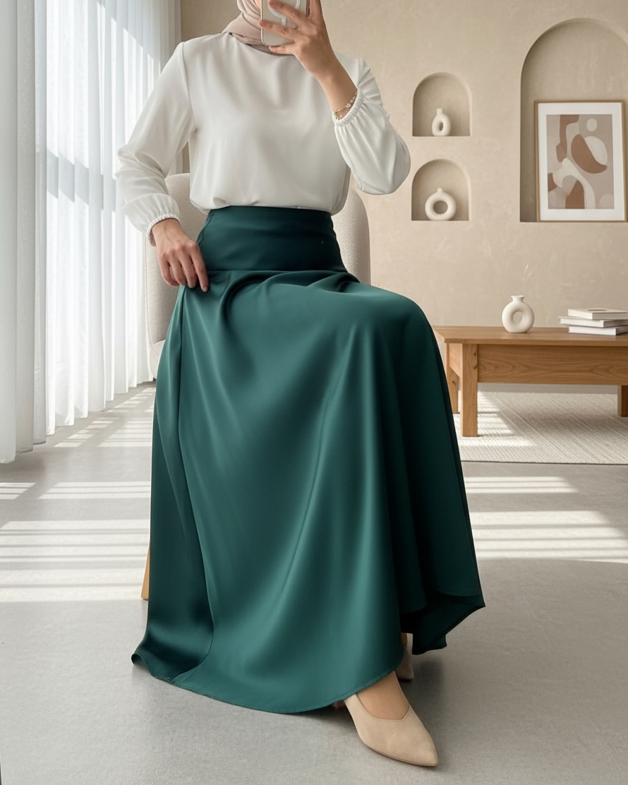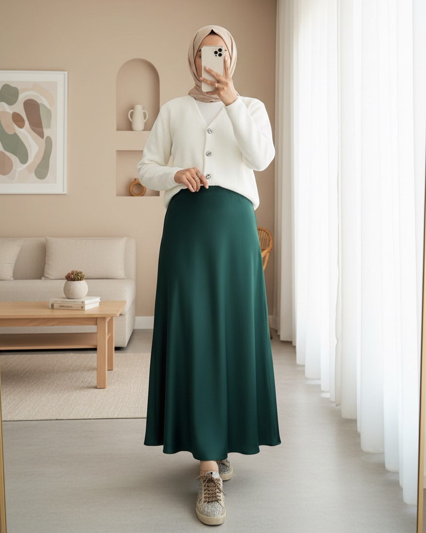 Beli Lastikli Saten Etek -Zümrüt-Zümrüt