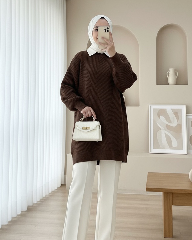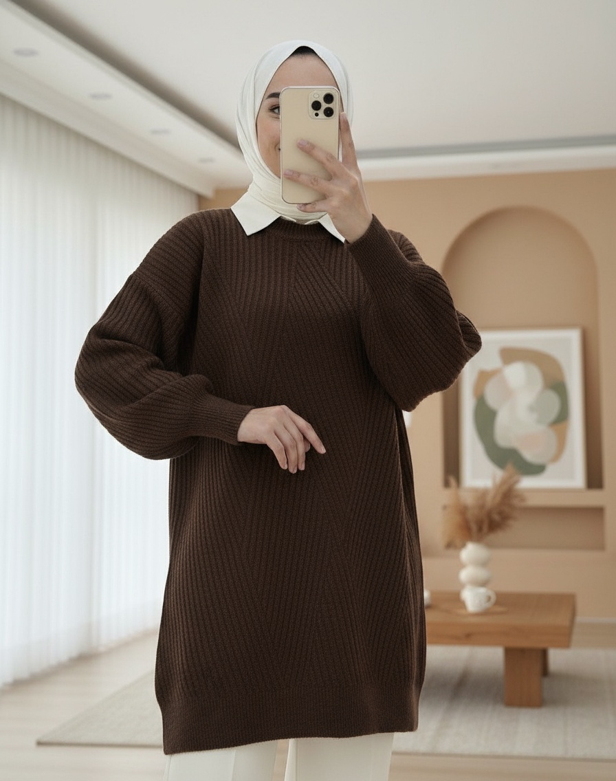 Bisiklet Yaka Baklava Desen Triko Kazak -K. Kahve-K. Kahve