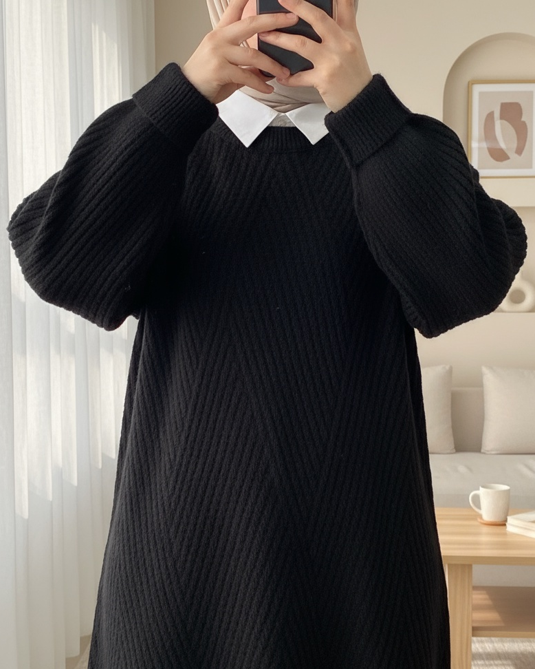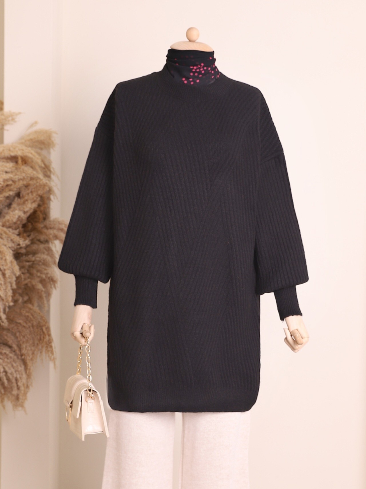Bisiklet Yaka Baklava Desen Triko Kazak -Siyah-siyah