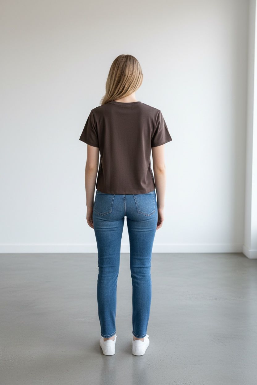 Bisiklet Yaka Basic Crop Kahverengi -11120-Kahverengi