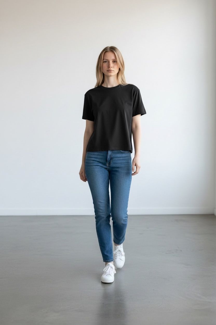 Bisiklet Yaka Basic Crop Siyah -11120-Siyah