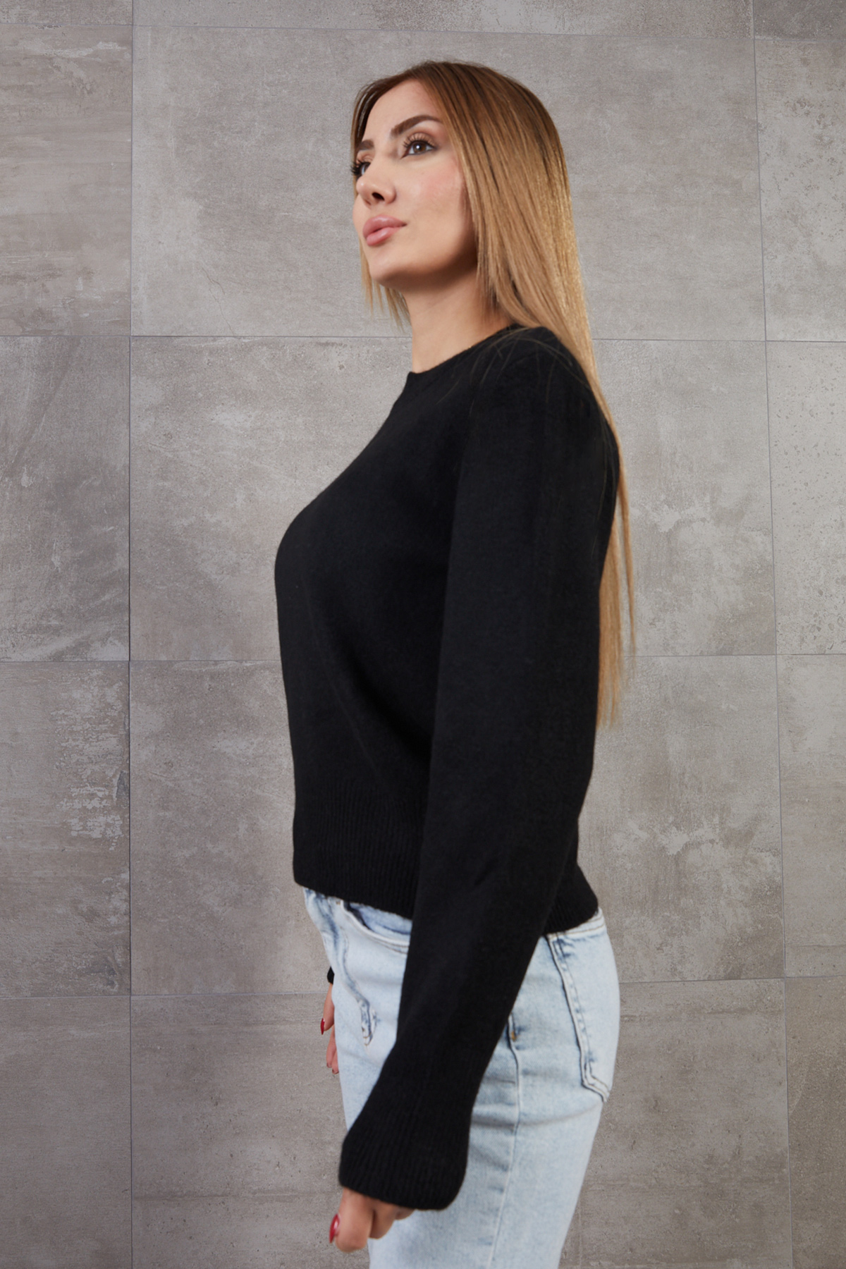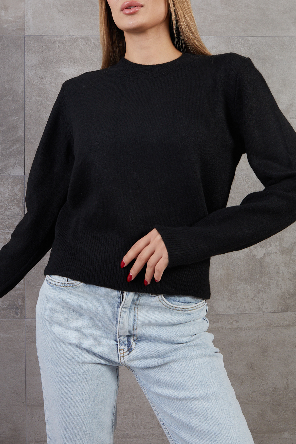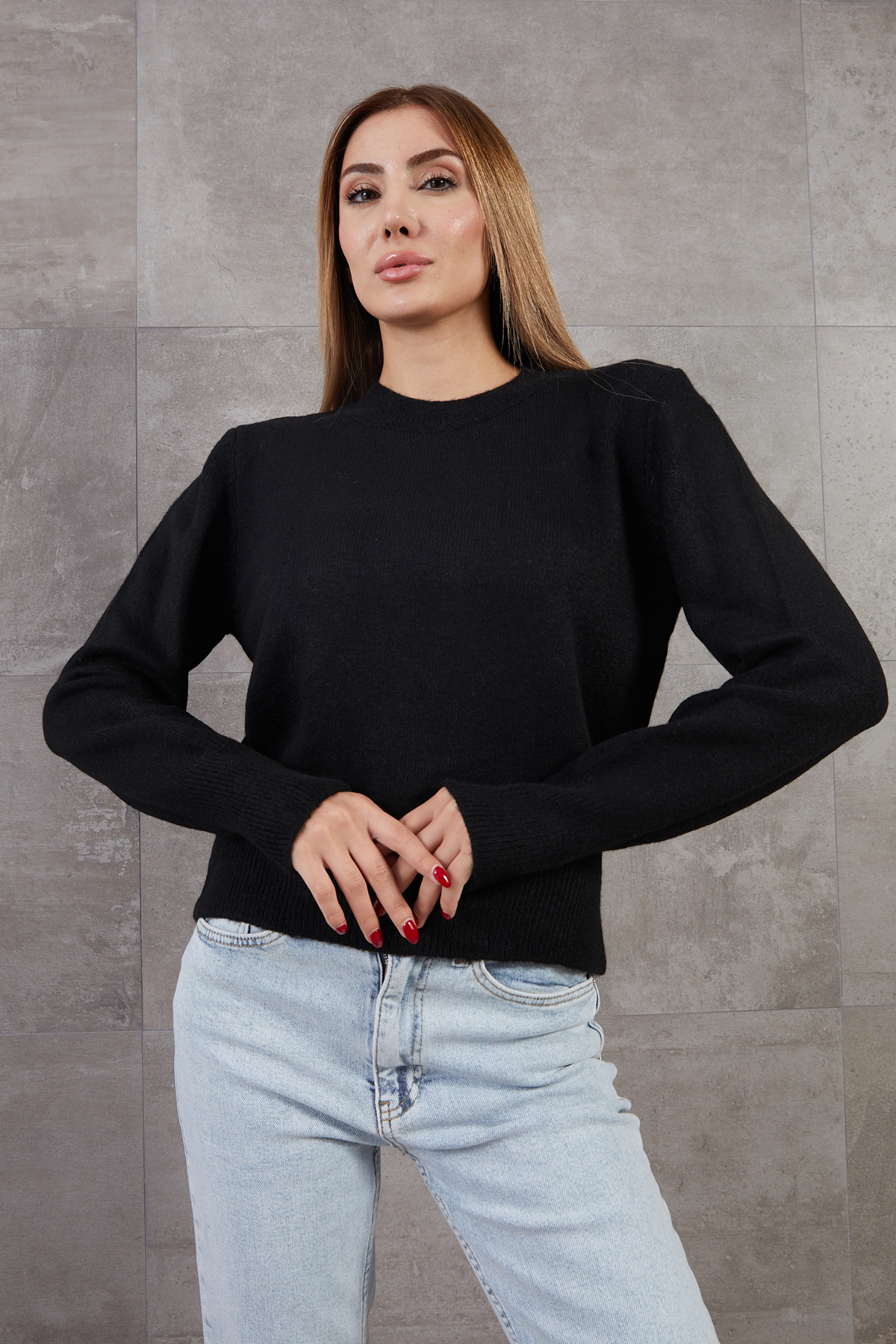 Bisiklet Yaka Basic Triko Kazak-Siyah