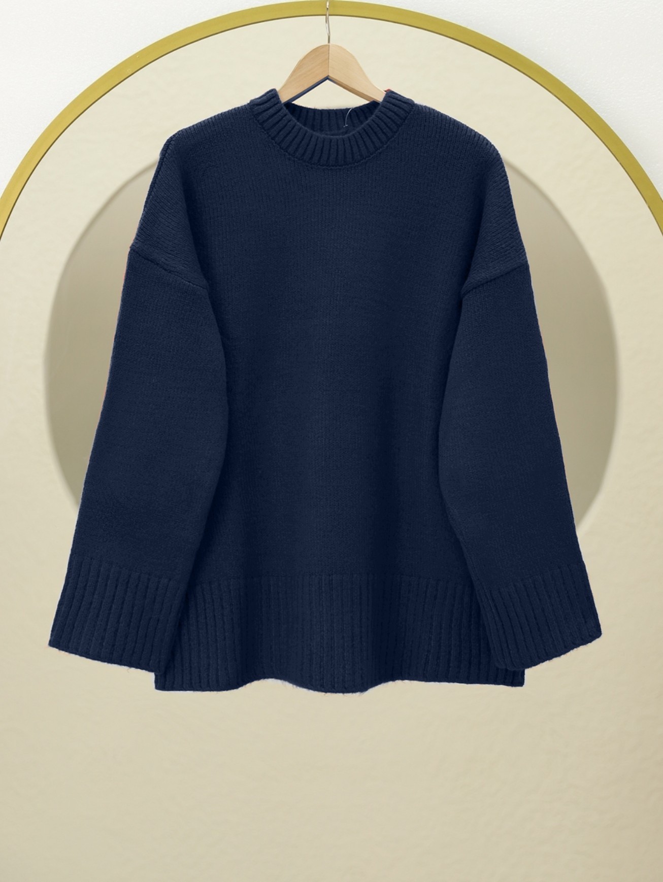 Bisiklet Yaka Eteği Fitilli Salaş Triko Kazak -Laci-Lacivert
