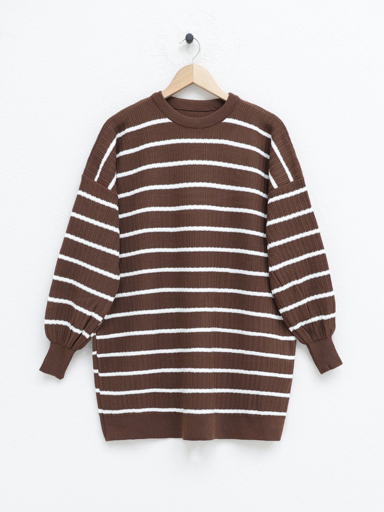 Bisiklet Yaka Fitilli Triko Tunik -Kahve-Kahve