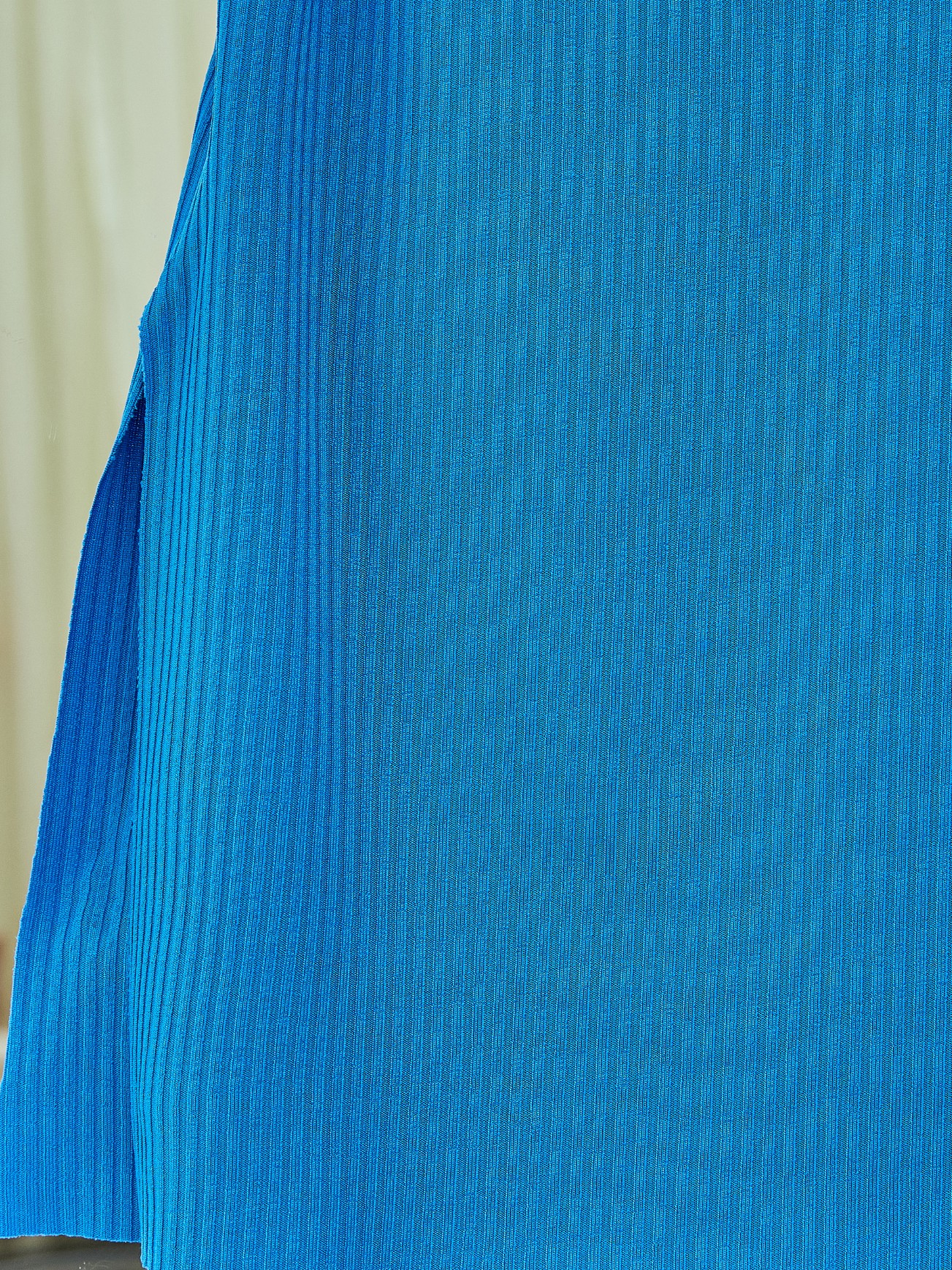 Bisiklet Yaka Fitilli Yırtmaçlı Tişort -Mavi-Mavi