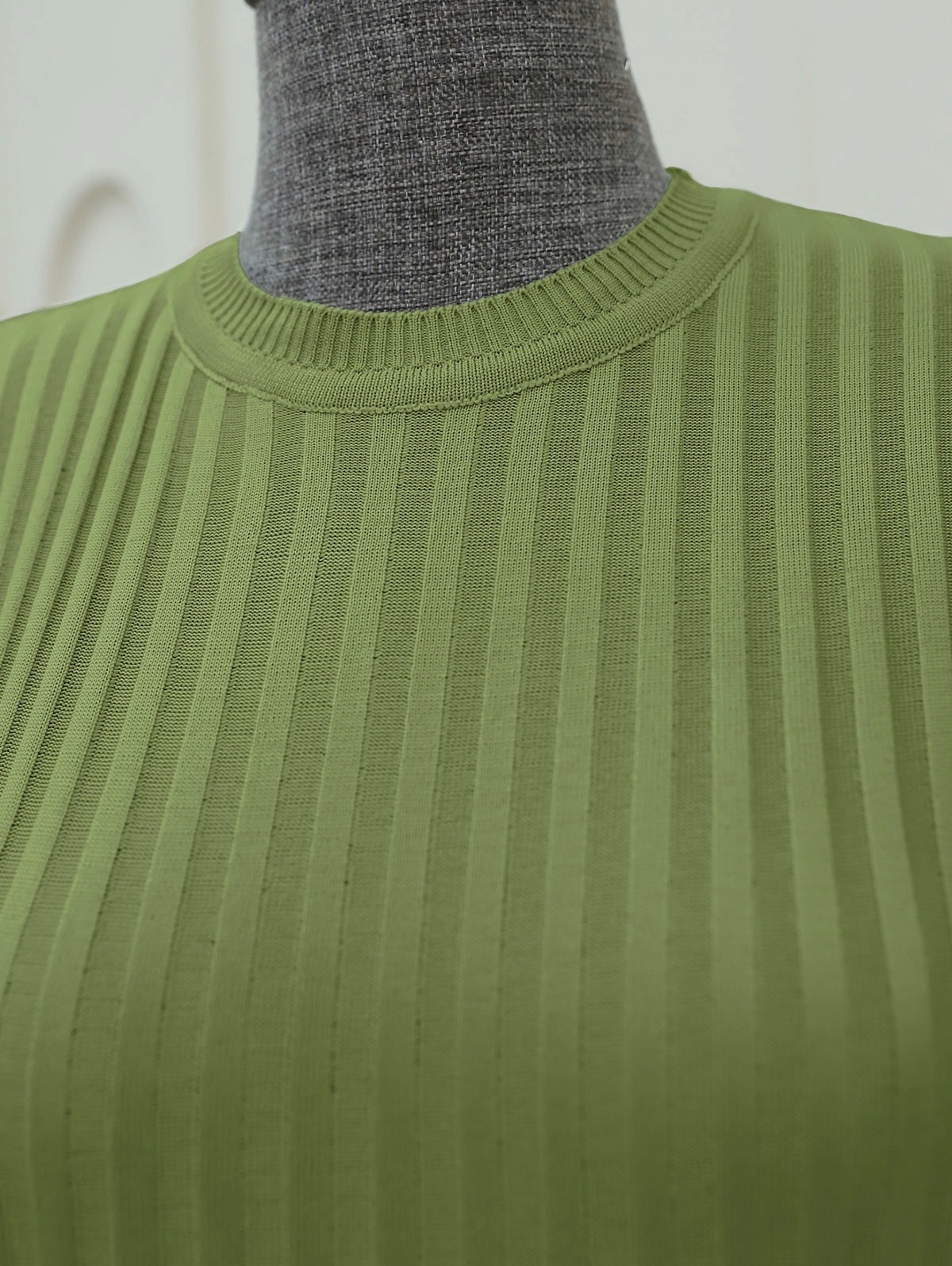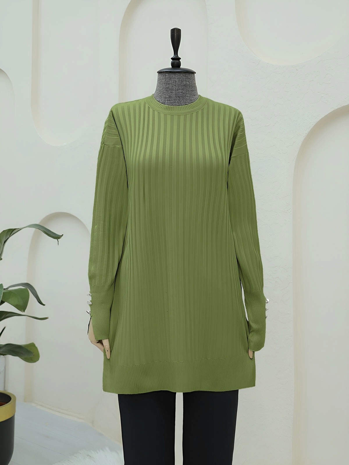 Bisiklet Yaka Fitilli Yırtmaçlı Triko Tunik -Yeşil-Yeşil