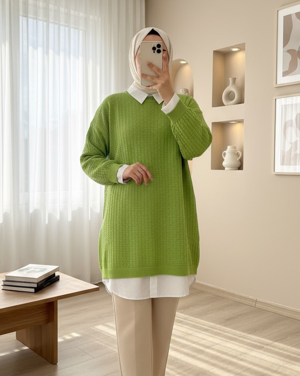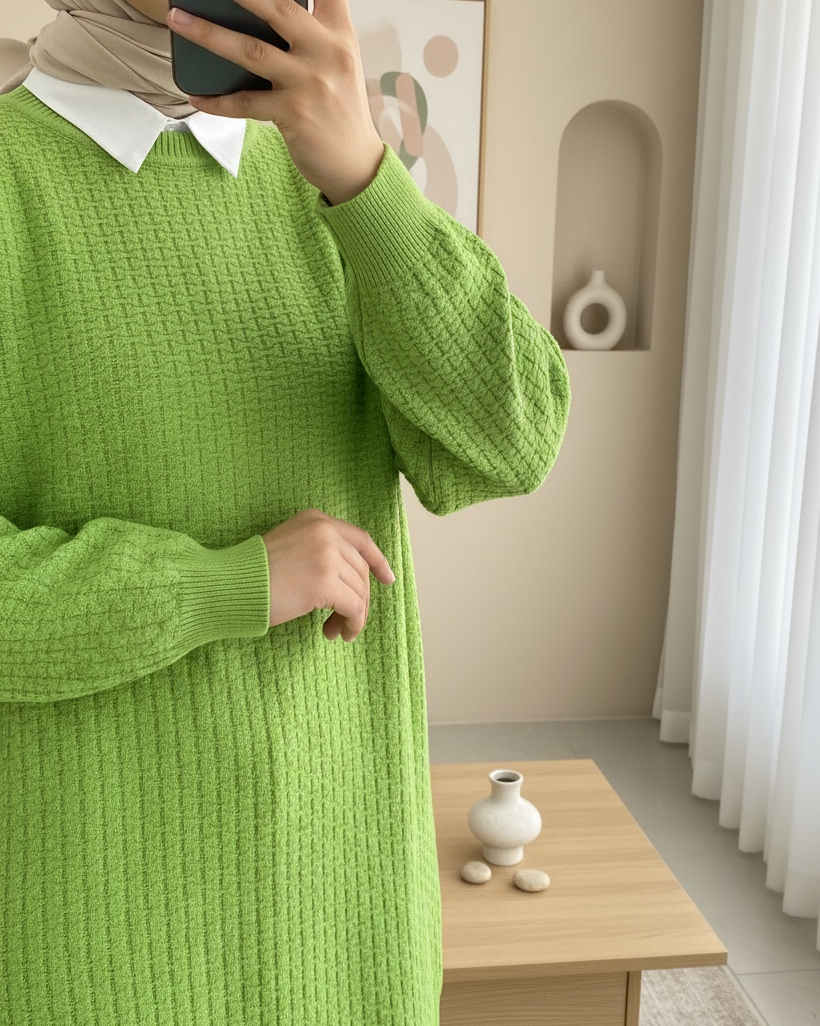 Bisiklet Yaka Örgü Desenli Triko Tunik -A.Yeşil-A.Yeşil