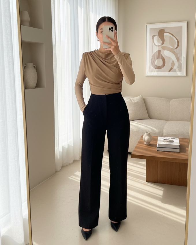 Bisiklet Yaka Sıfır Kol Sandy Bluz -Vizon-Vizon