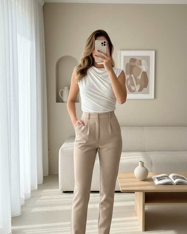 Bisiklet Yaka Sıfır Kol Sandy Tişort -Beyaz-Beyaz