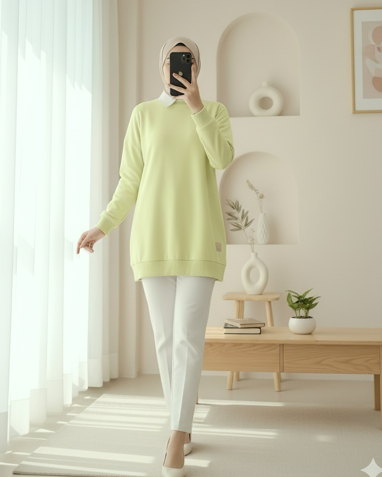 Bisiklet Yaka Yırtmaçlı Armalı Sweat -Açık Sarı-Açık Sarı