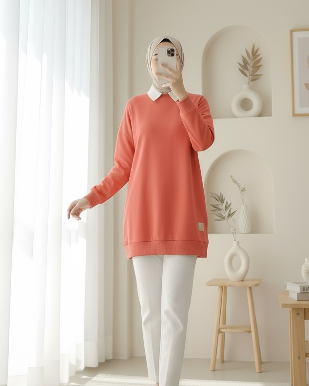 Bisiklet Yaka Yırtmaçlı Armalı Sweat -Nar Çiçeği-Nar Çiçeği