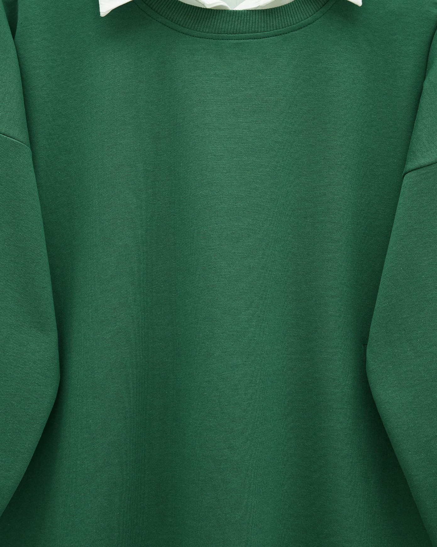 Bisiklet Yaka Yırtmaçlı Penye Sweat -Zümrüt-Zümrüt