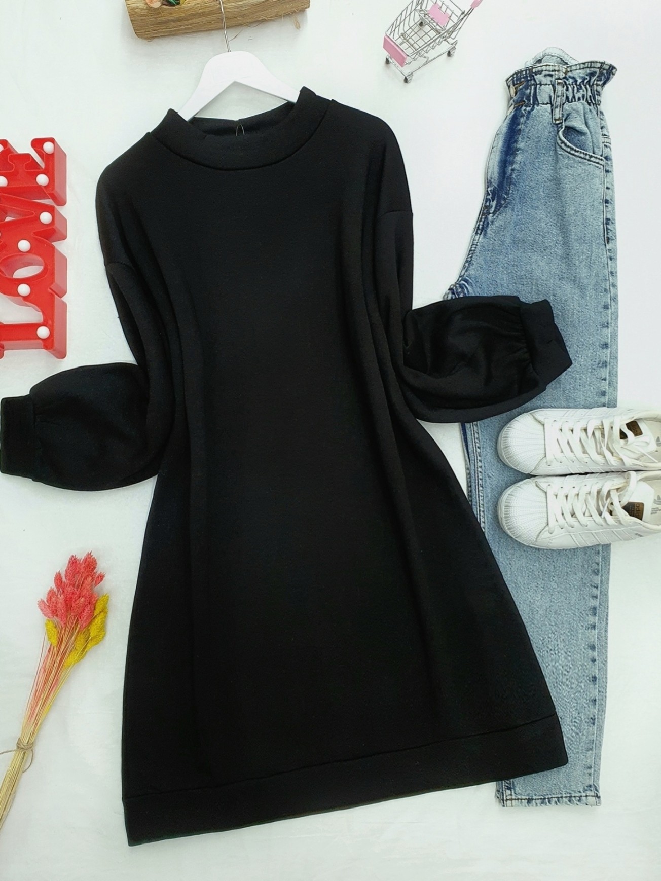 Boğazlı Üç İplik Polar -Siyah-siyah